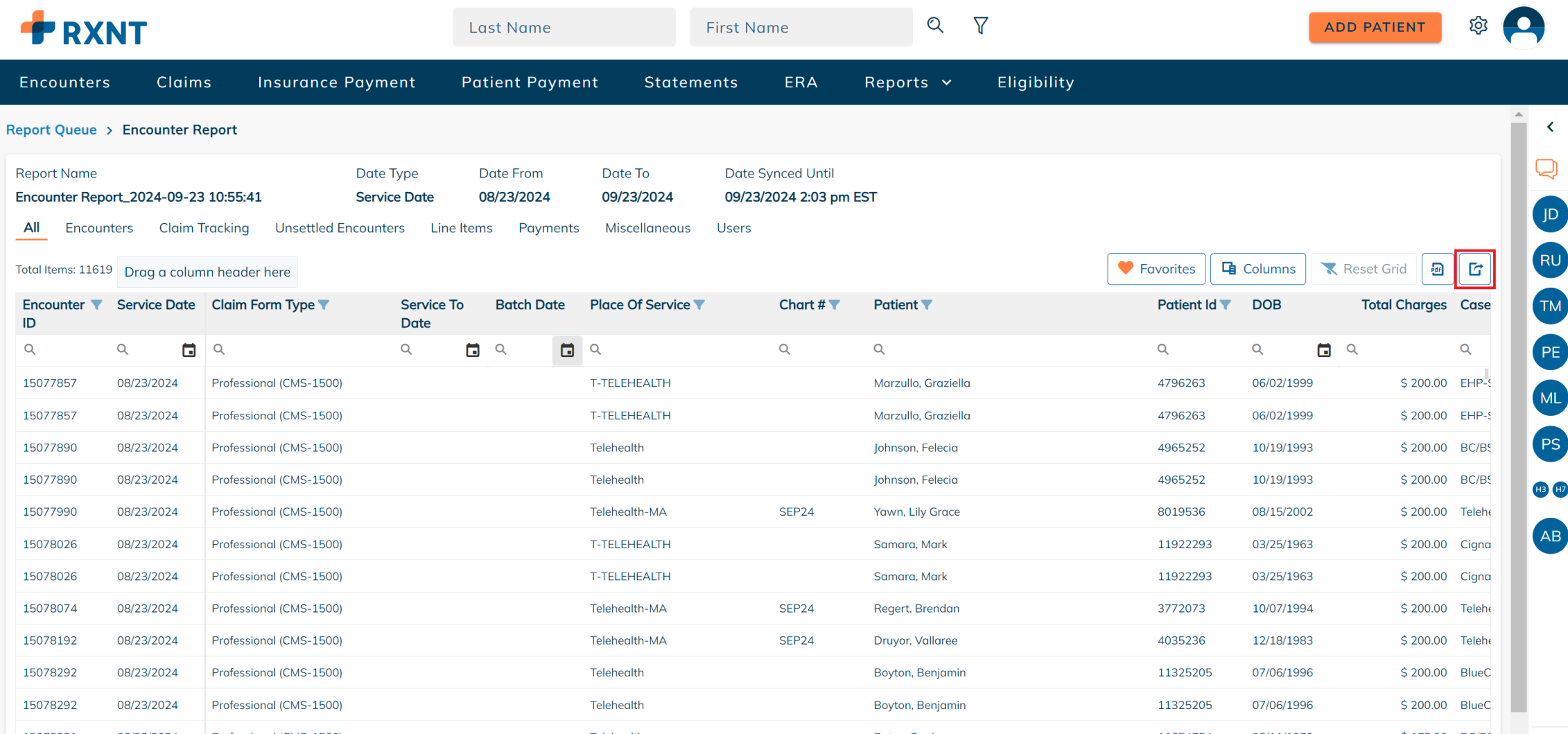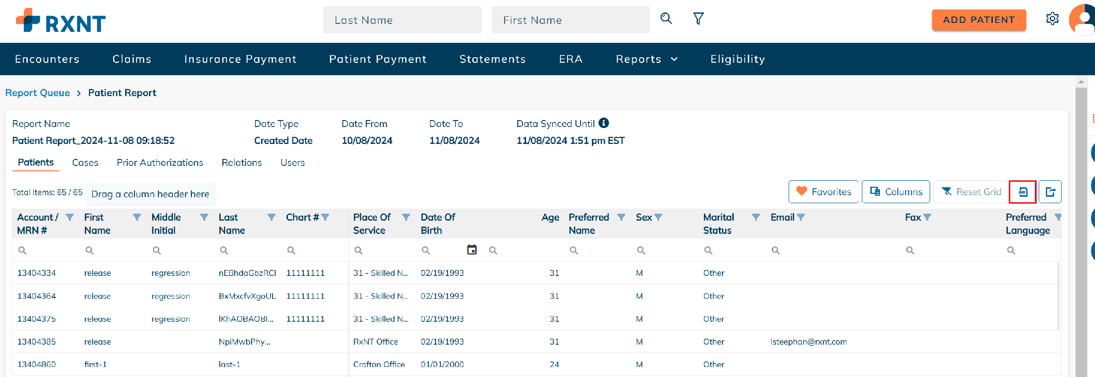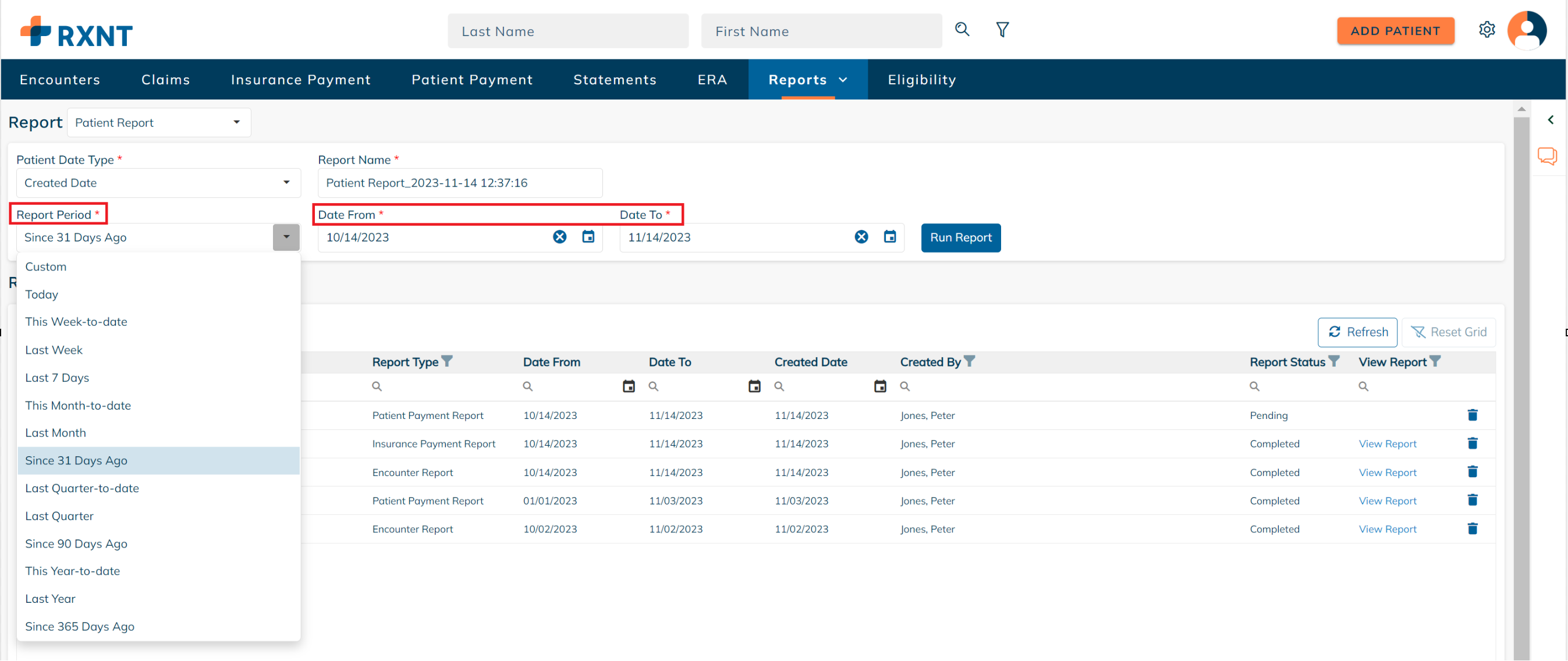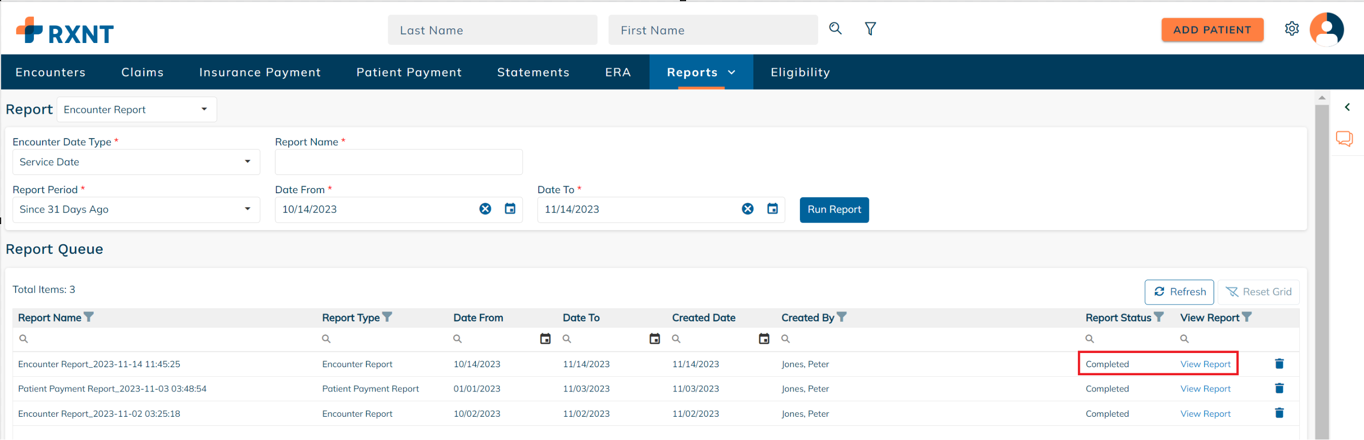 Click Run Report to generate the Patient Report. This report will filter the encounters based on the date type and range selected.