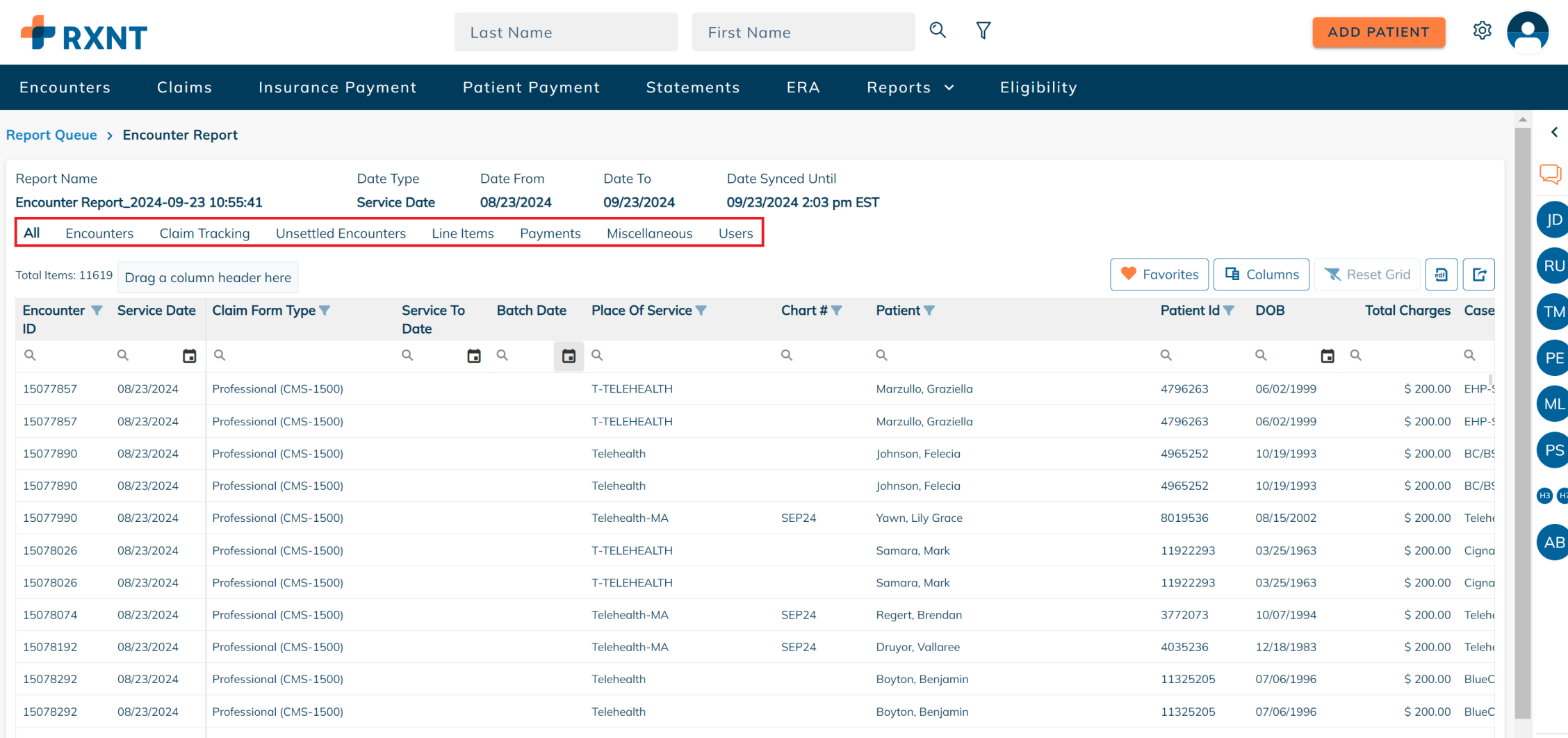- Claim Tracking - Displays claim details for the filtered encounters.