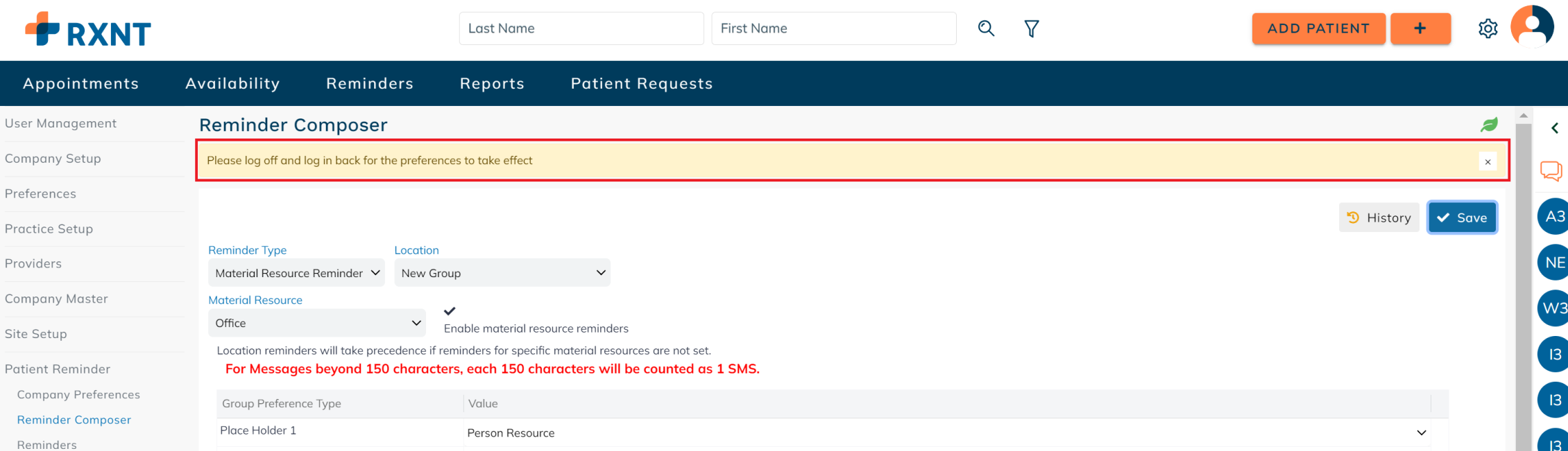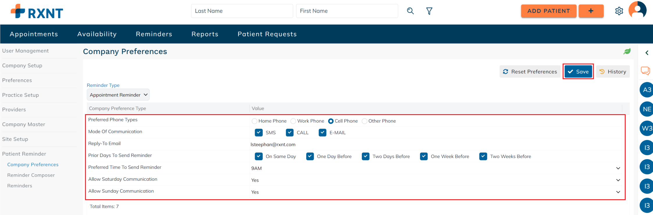 Click Patient Reminder, then Company Preferences.