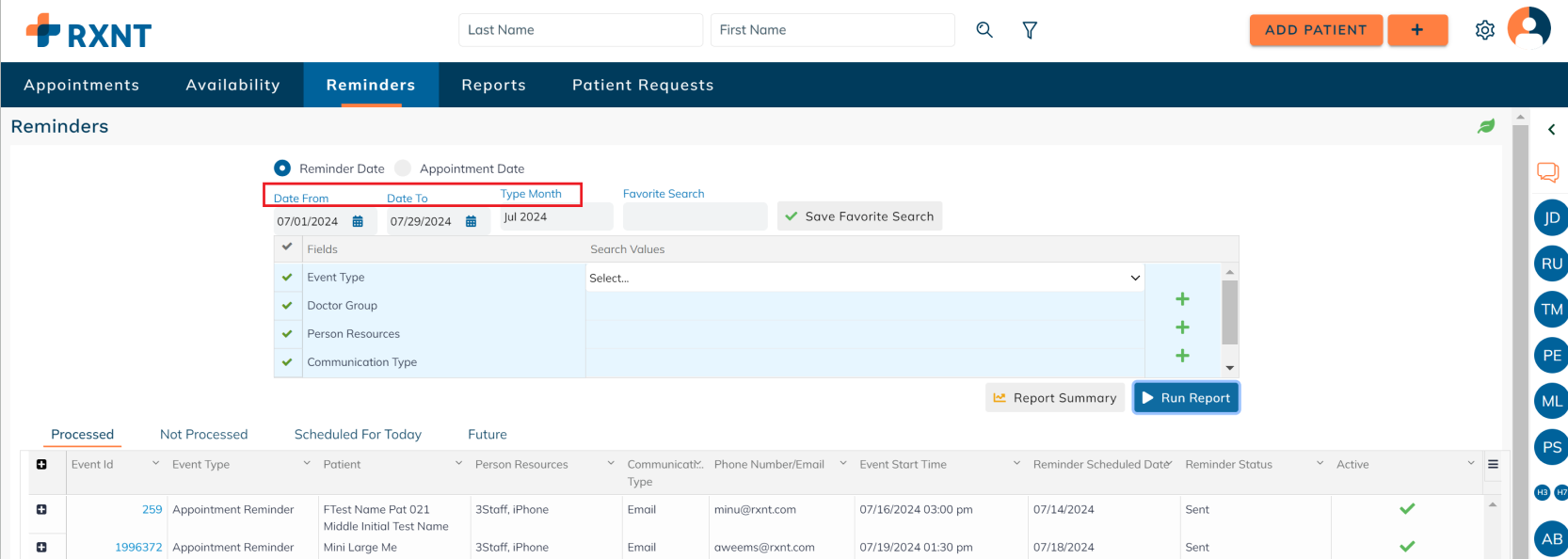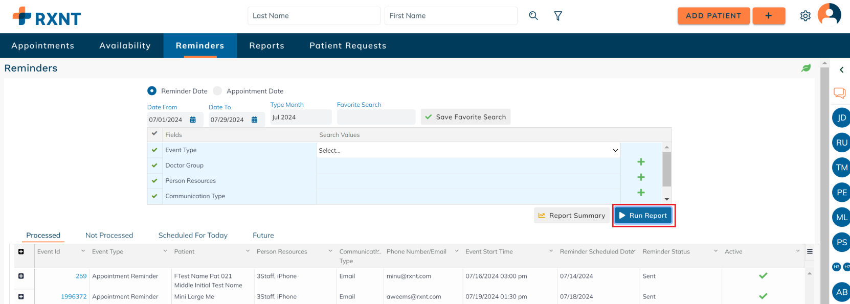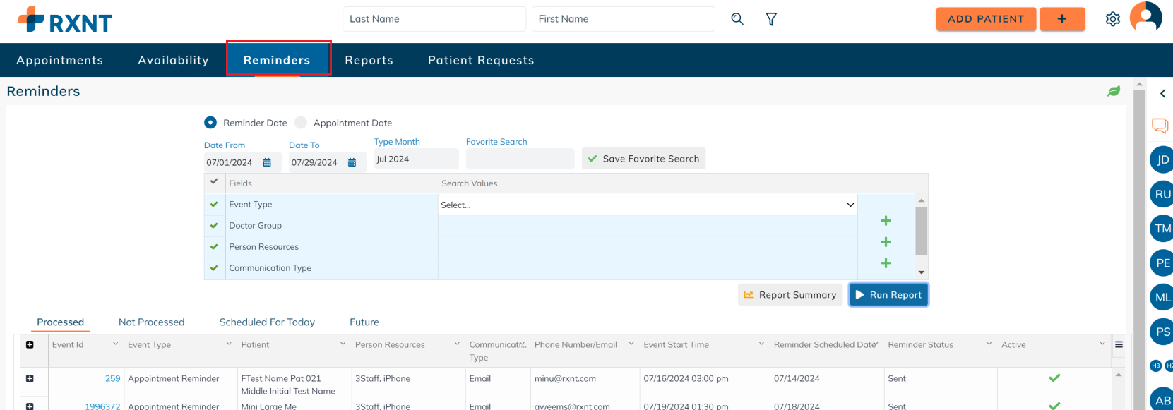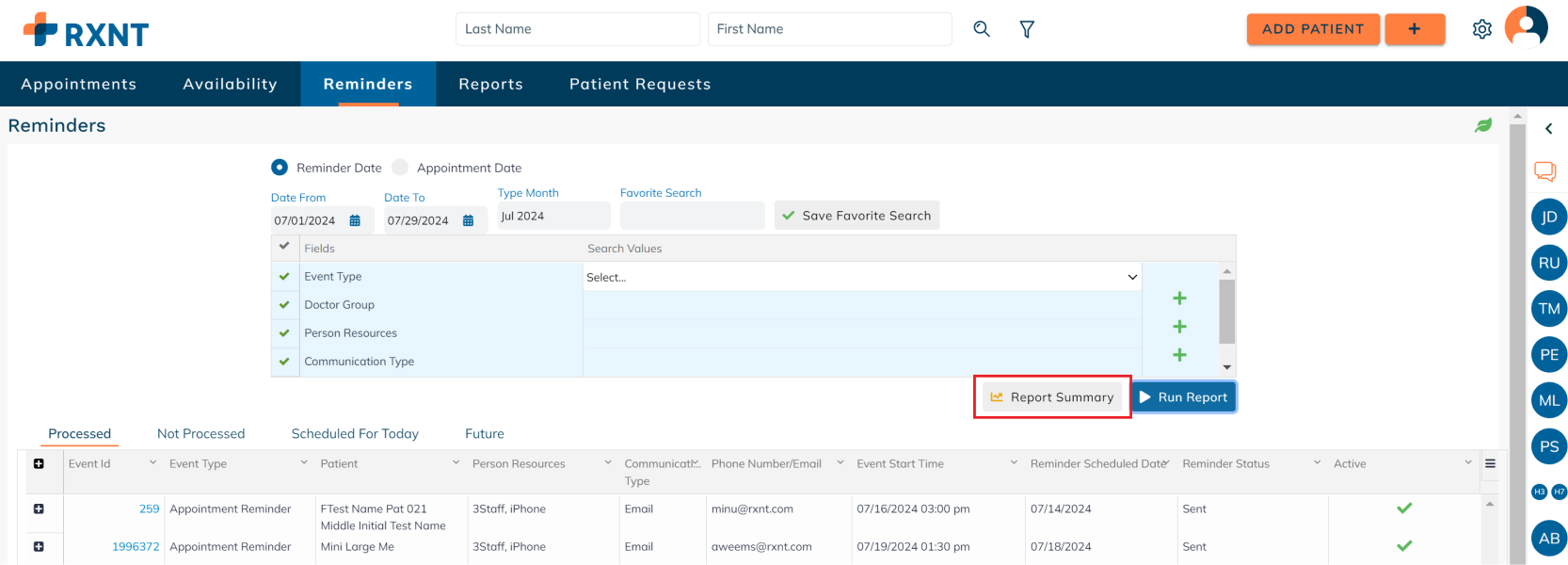 Click Report Summary to see a quick snapshot broken down by reminder type.