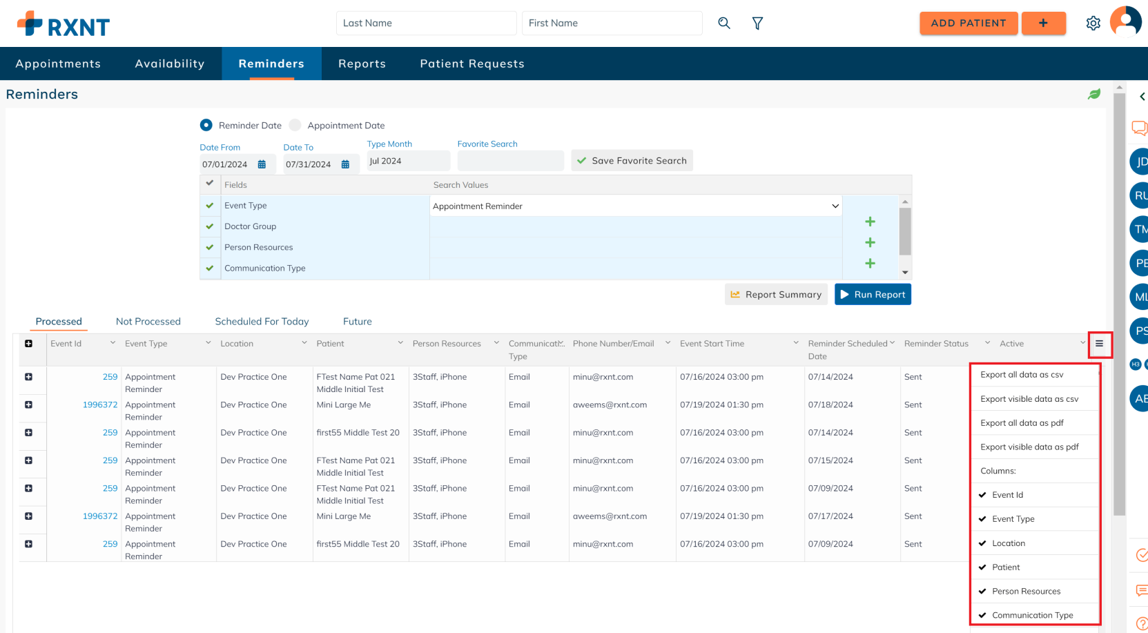 You can choose to export the report in either CSV or PDF format by clicking on the Three Lines. You also have the option to add or remove columns.