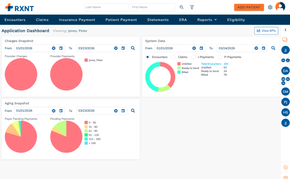 When toggled on, Rendering Providers will only see their own data when accessing the Billing Dashboard after logging in. This includes their individual charge snapshots, aging snapshots, system data, and associated KPIs. All other user roles will continue to have access to full practice-level data across the dashboard. In addition, the Alerts grid will be hidden for Rendering Providers, as it contains alerts that apply to all providers and is not filtered at the individual provider level.