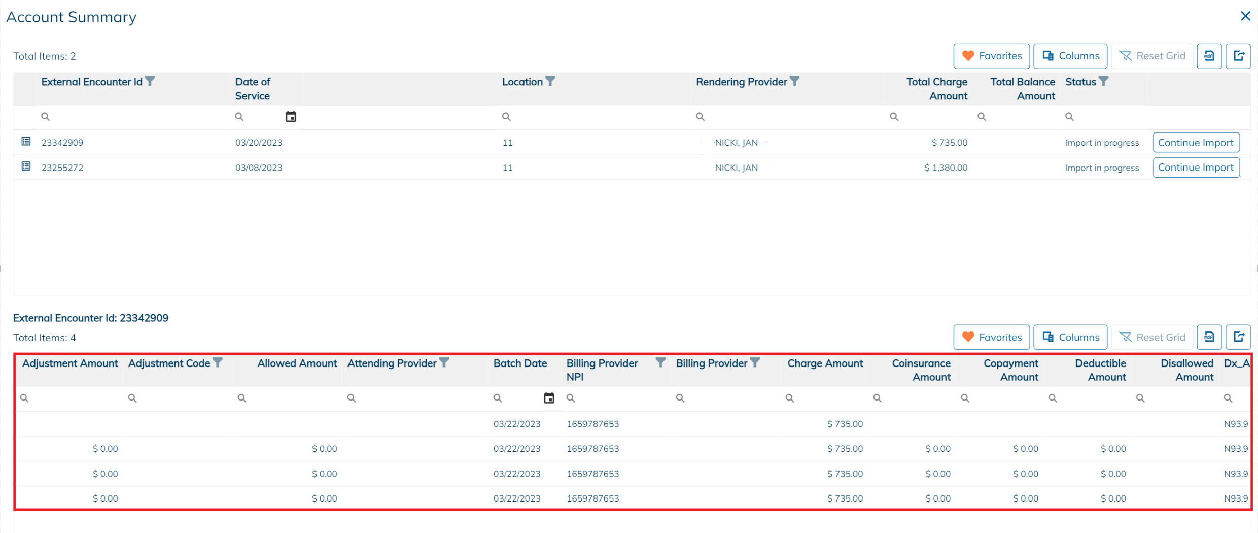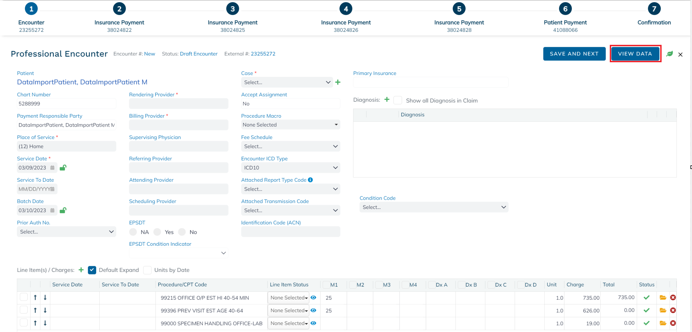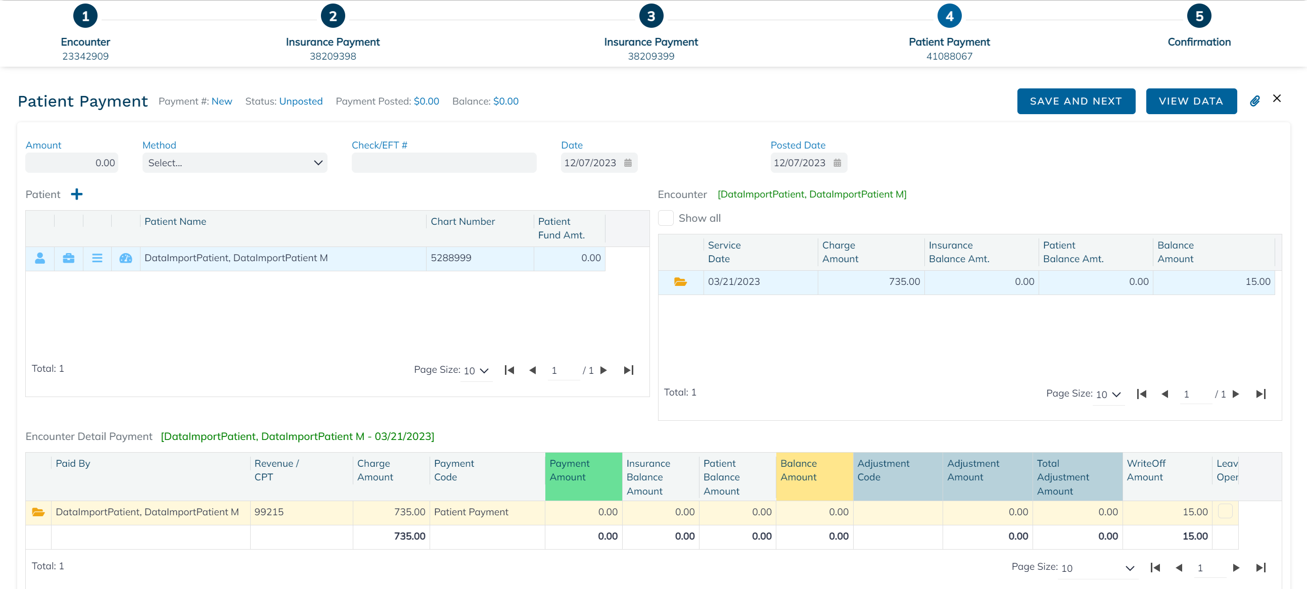 Imported charges will have a Ready to Bill status if payments were applied to the line items and the associated payments will have a Posted status. If no payments were applied to the line items, the status will be New Encounter. If there is no balance, the status will be Settled Encounter.