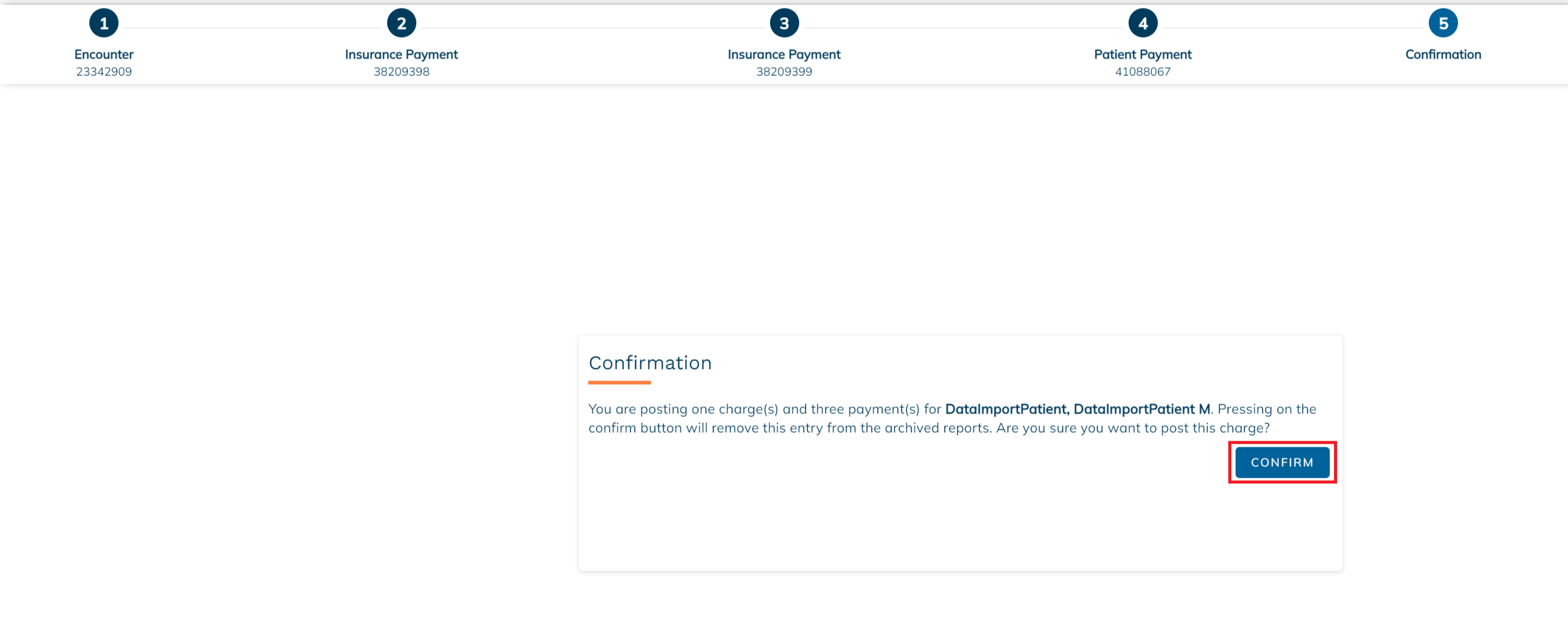 By confirming, the associated charges and payments will begin an import into the RXNT system.