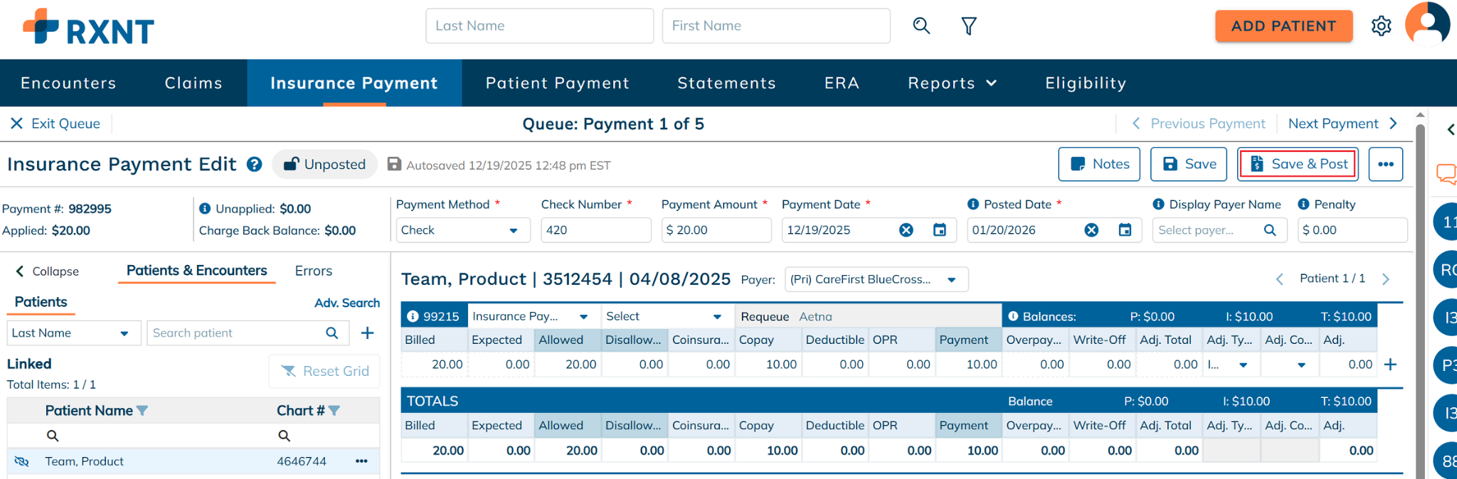 Or, click Save & Post to post the payment. You’ll be automatically taken to the next payment in the queue.