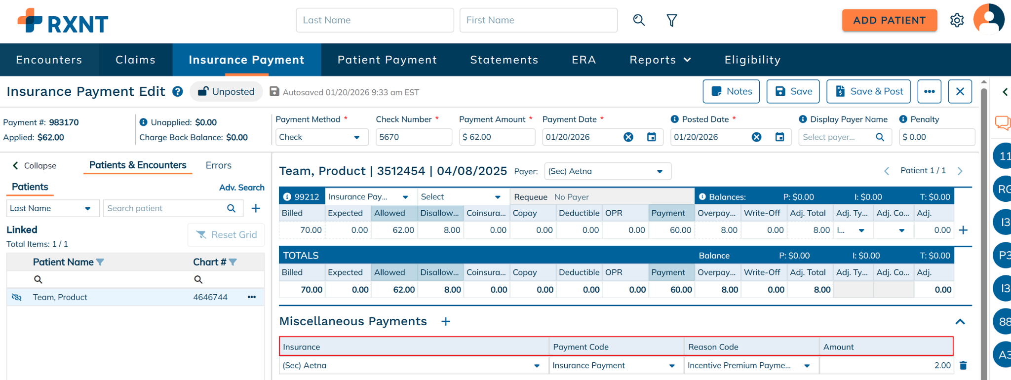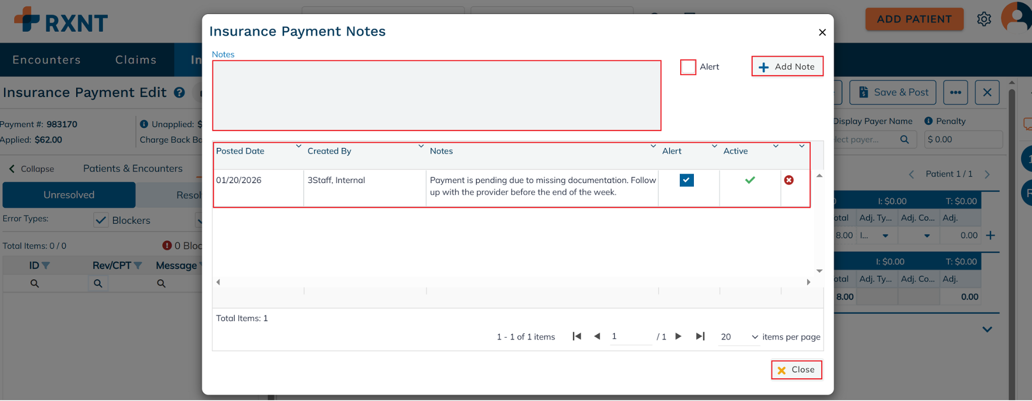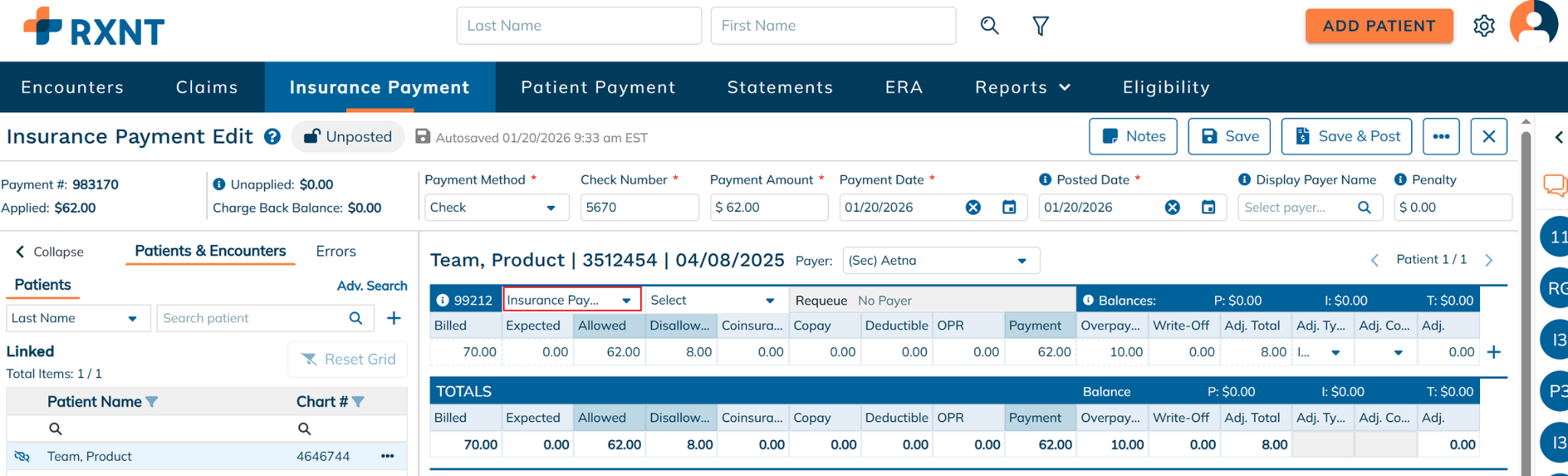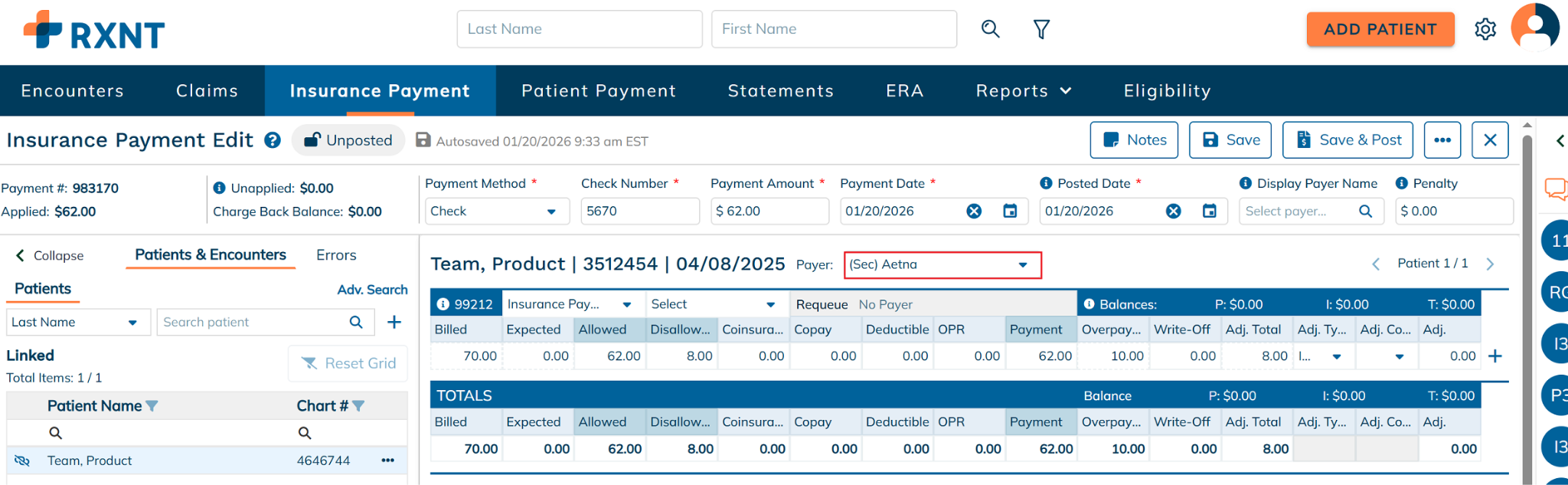Posting insurance payments in RXNT ensures accurate financial records, proper claim resolution, compliance with payer requirements, and clear billing for both insurance companies and patients. This article walks you step by step through creating, reviewing, and posting insurance payments, including ERA payments, while explaining common scenarios, errors, and best practices.