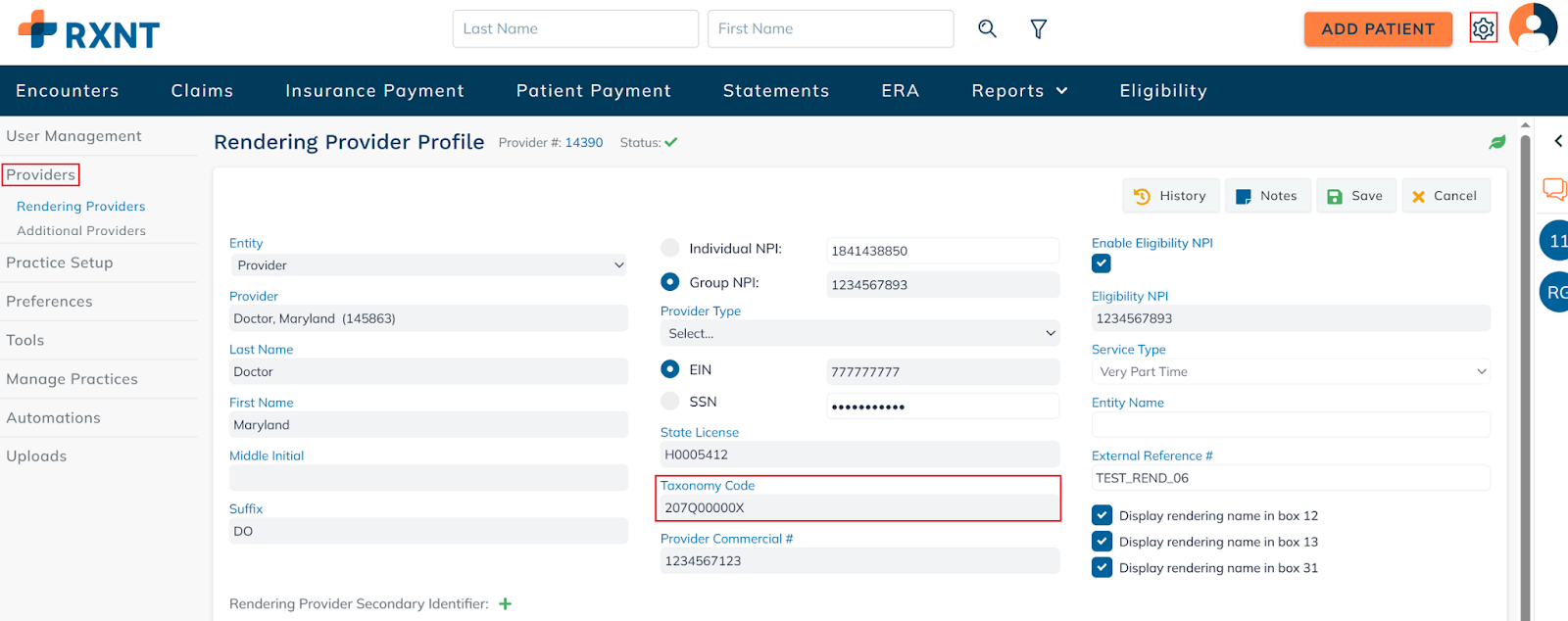 Provider & taxonomy code rejections