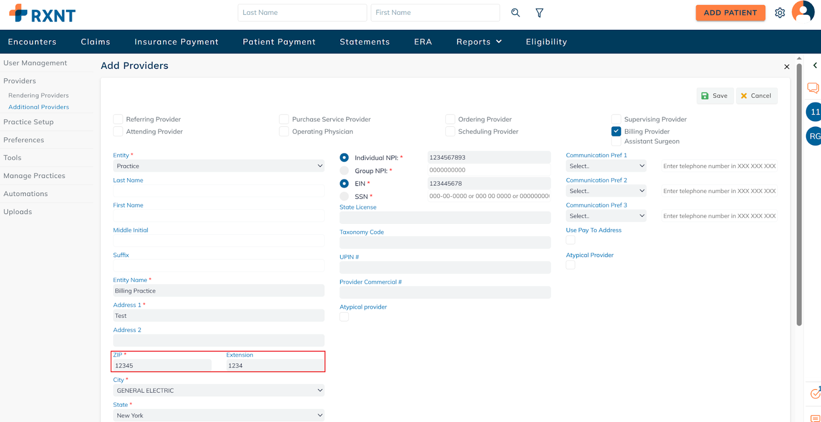 - Click Providers, and choose either Rendering or Additional Providers