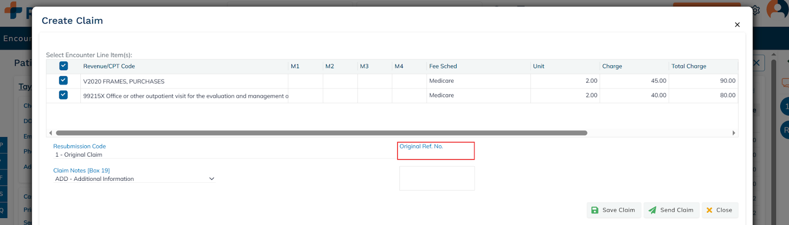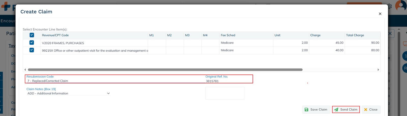 - Select the Resubmission Code & enter the Original Ref No