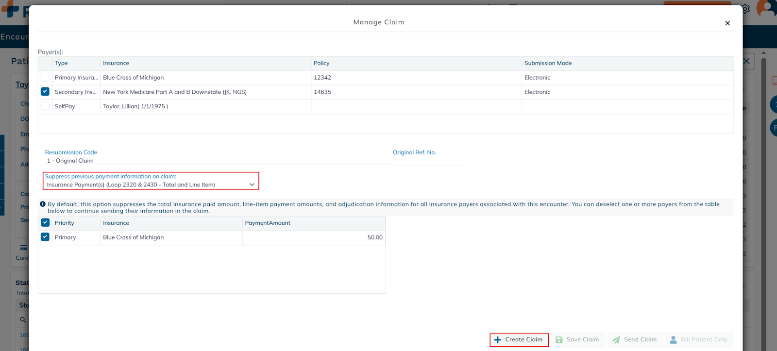 - Do not use "Suppress Previous Payment Information” when resubmitting secondary claims. This removes primary payment details and may cause additional rejections.