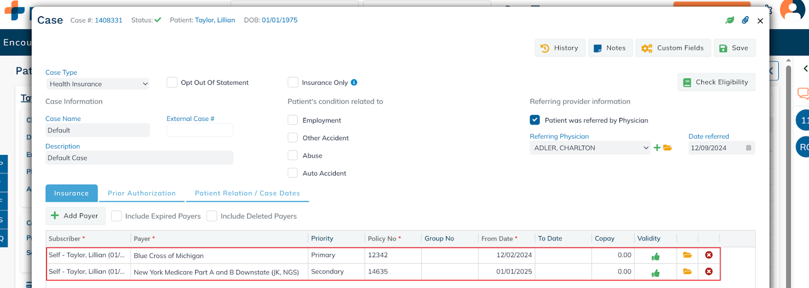 - Scroll to the Insurance Payment section
