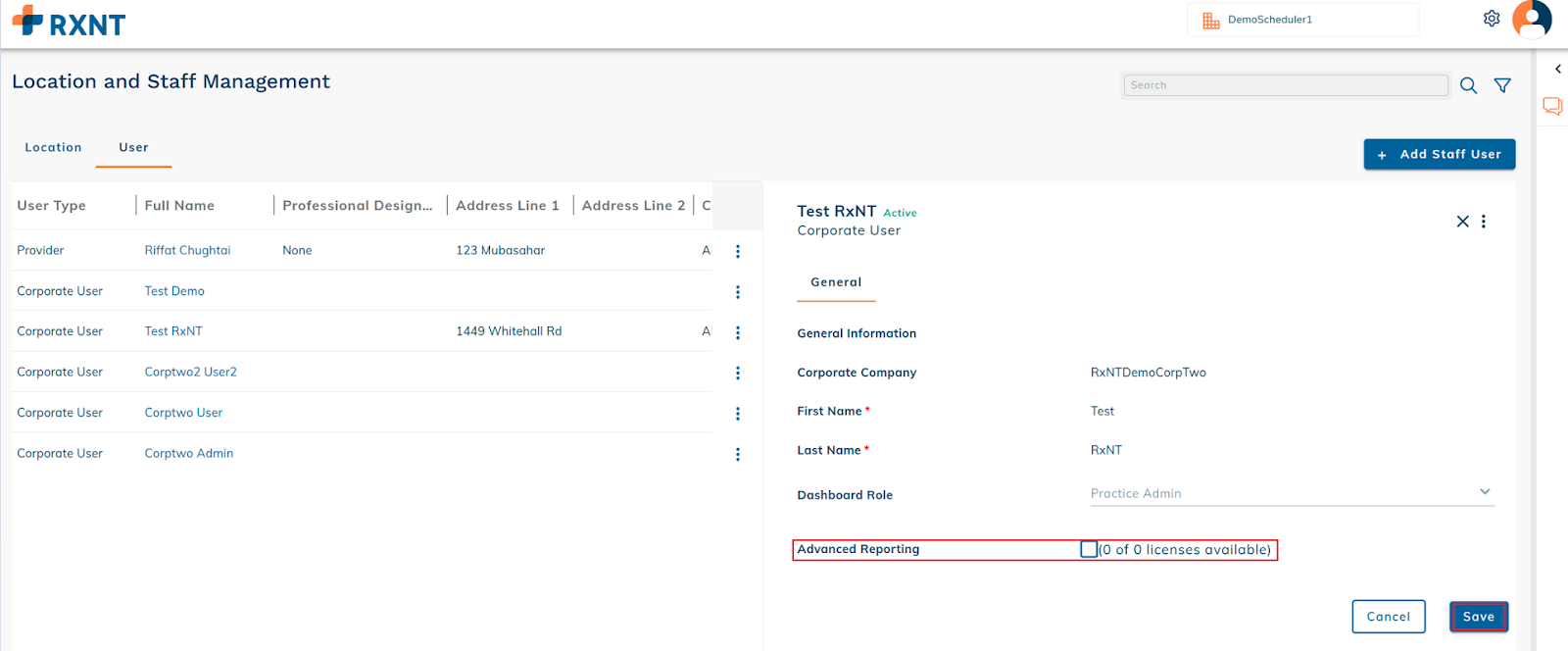 To unlock Advanced Reporting dashboards, a Practice Administrator must first assign the Advanced Reporting license to the CBO user.