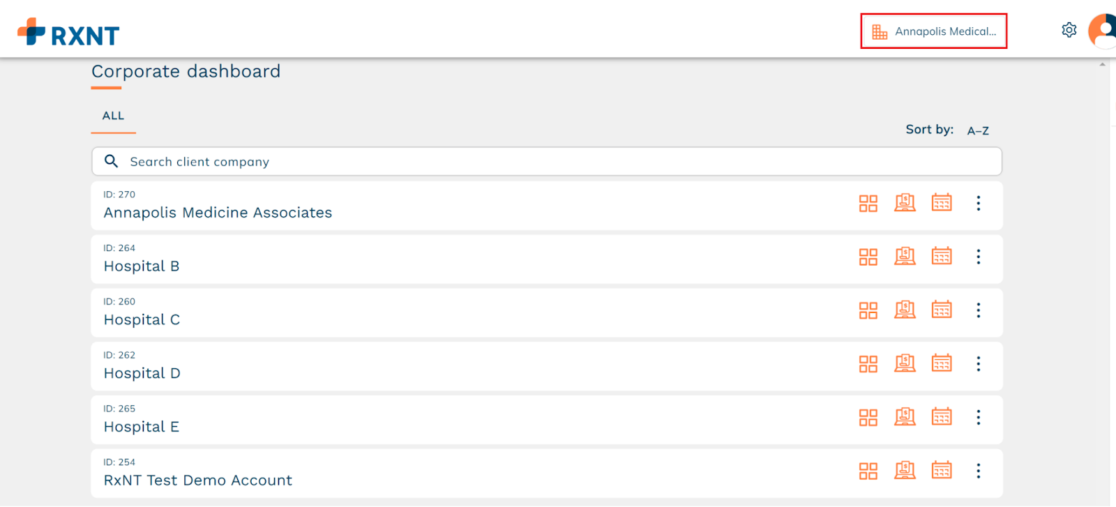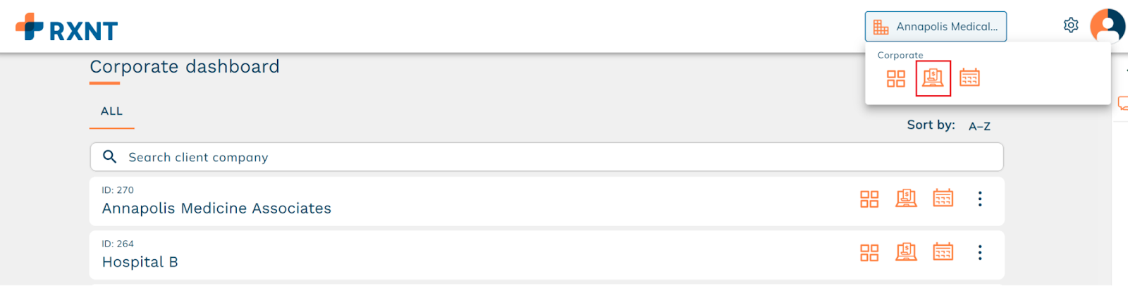 Click the Billing icon to enter the Corporate Billing dashboard.