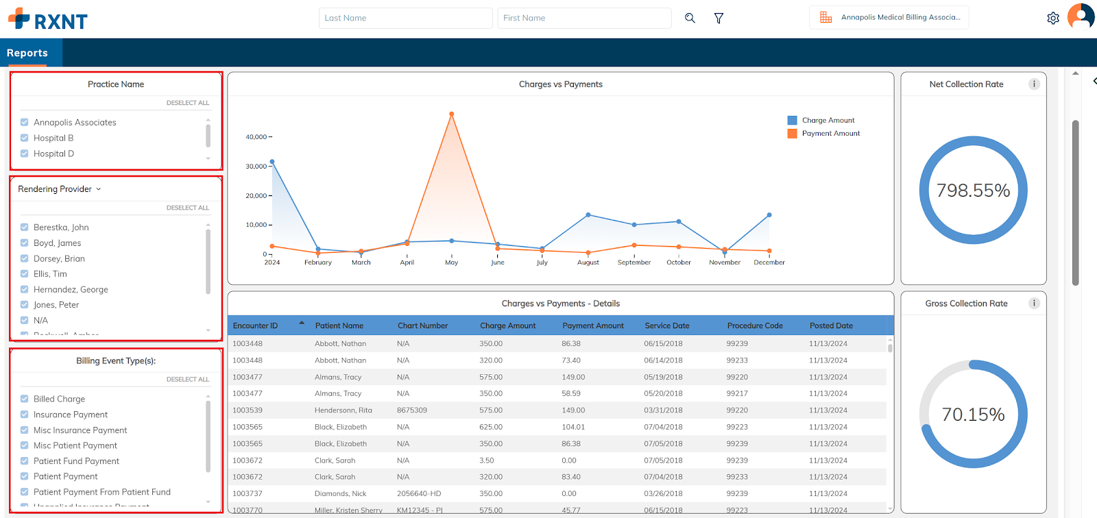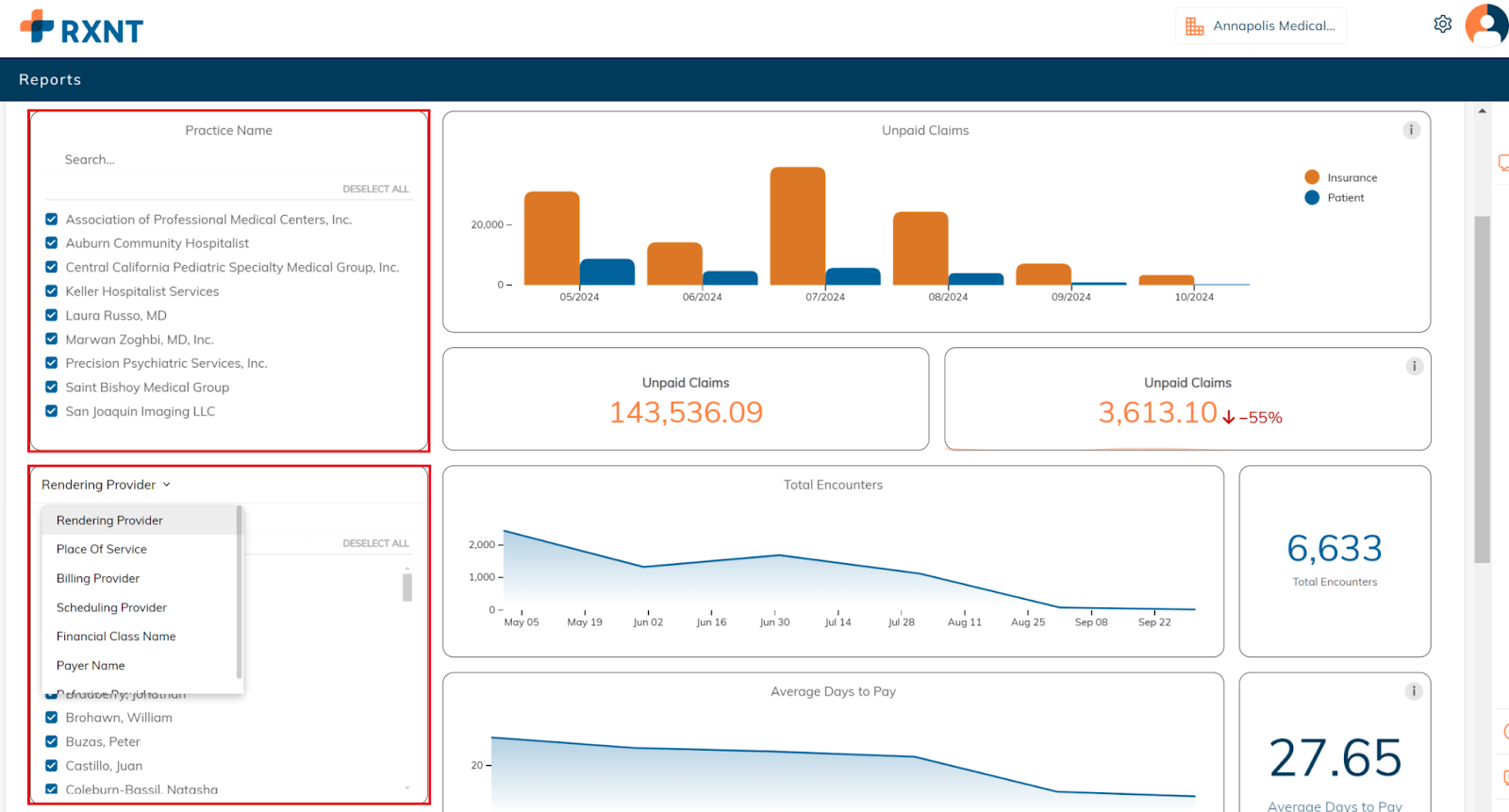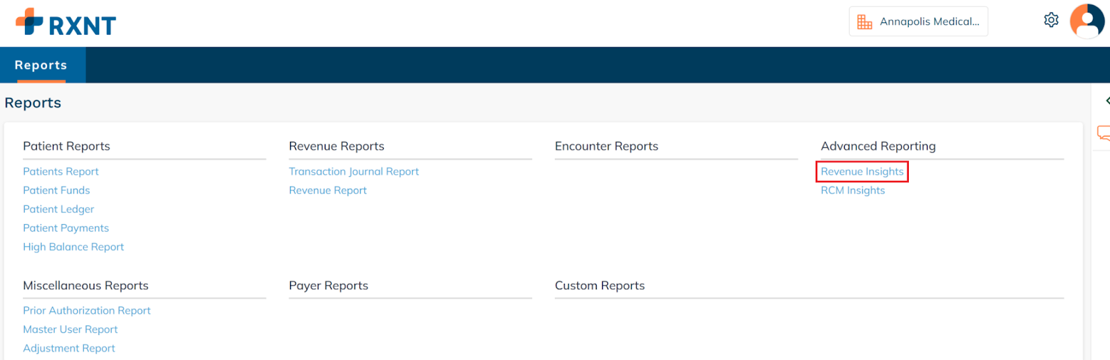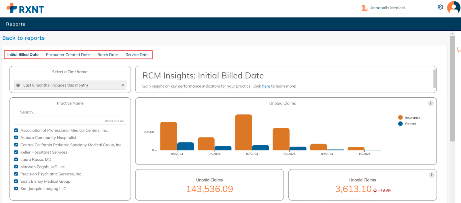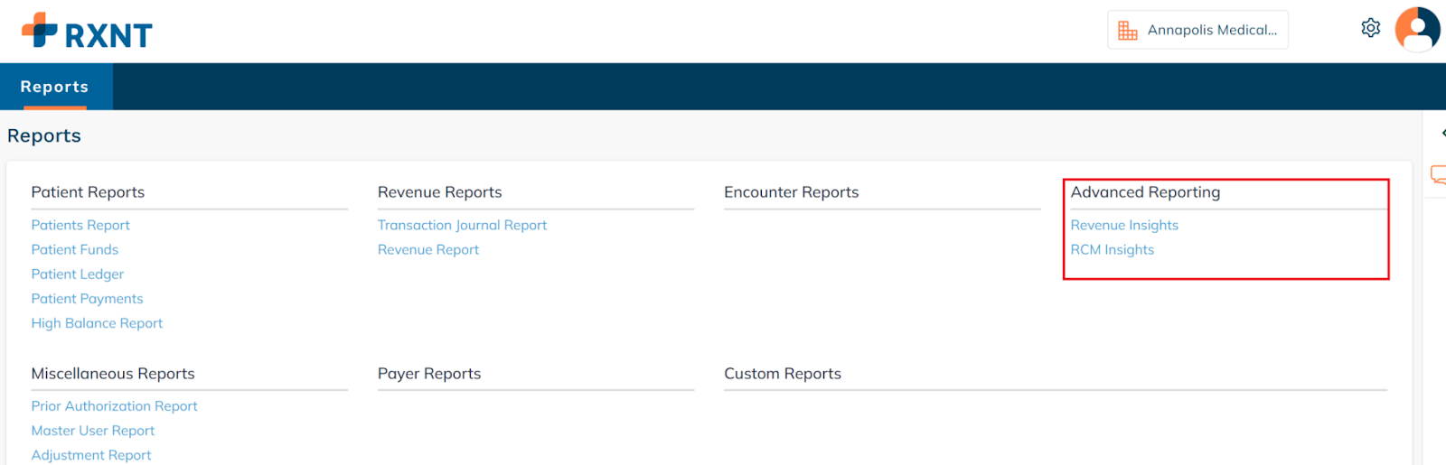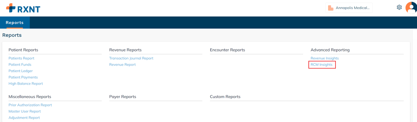 Click here to learn more about filtering Advanced Reports, and click here to learn about the RCM Insights dashboard.