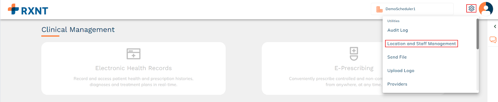 Once on the product dashboard, start by clicking the Utilities icon, then select Location and Staff Management.