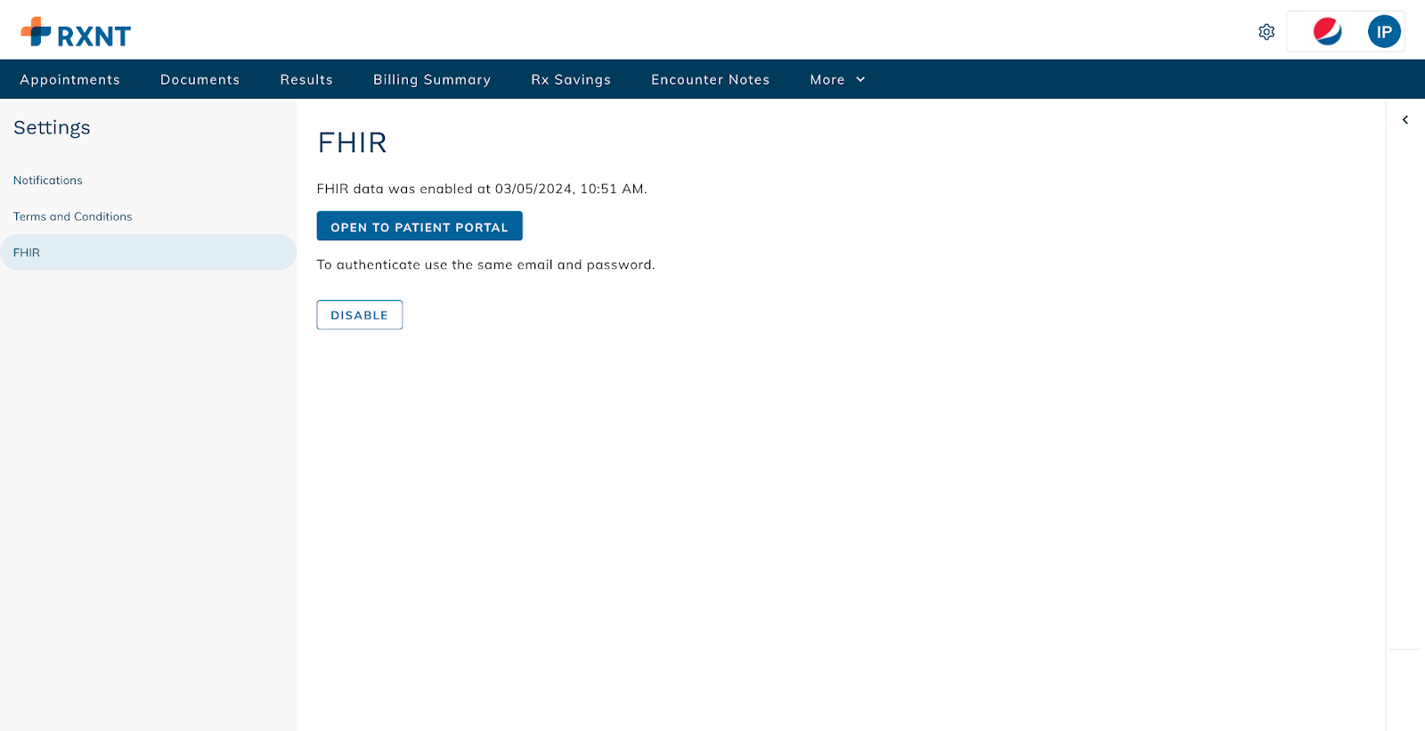 Patients can disable FHIR at any time, which will prohibit any future PHI from syncing with the integration.
