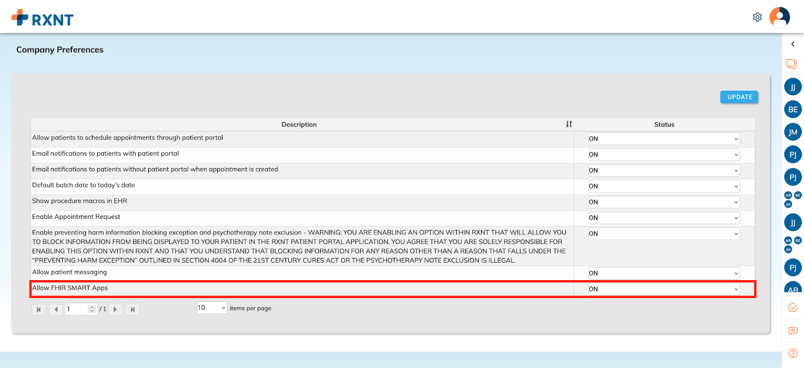 RXNT complies with the 170.315(g)(10) certification standard, which requires health IT systems to use FHIR-based APIs for secure and standardized data sharing. RXNT uses Aidbox, a FHIR platform, to support our FHIR integration. This connection allows approved SMART apps (Substitutable Medical Applications, Reusable Technologies) to connect and exchange patient information safely, supporting better coordination of care and interoperability.