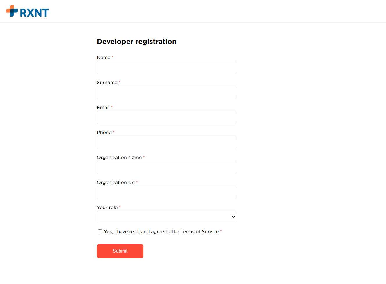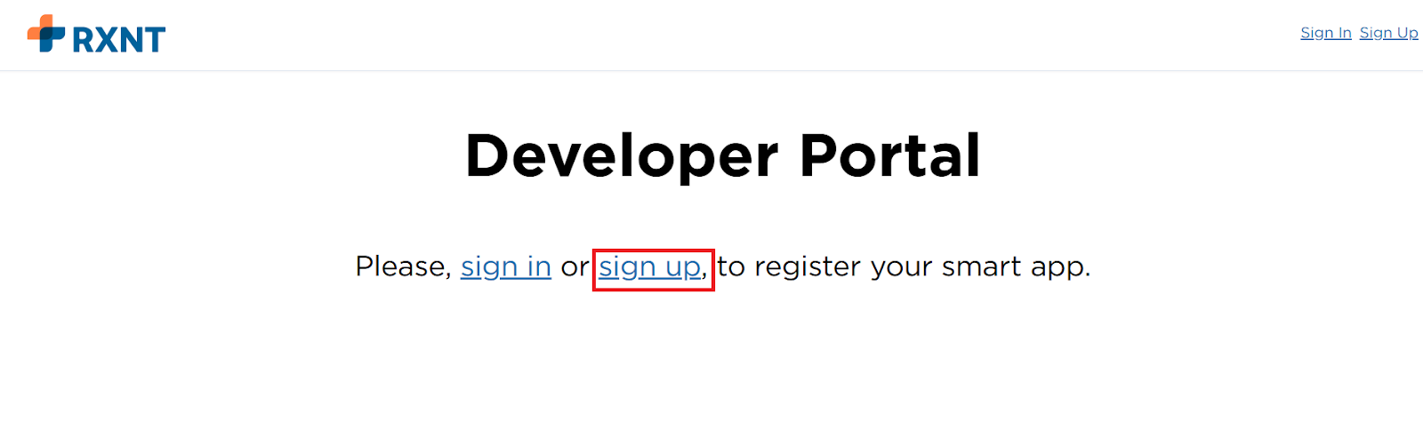 If you are a developer interested in integrating your SMART app with RXNT, go to https://developer.fhir.rxnt.com/, click sign up and complete the sign-up form.