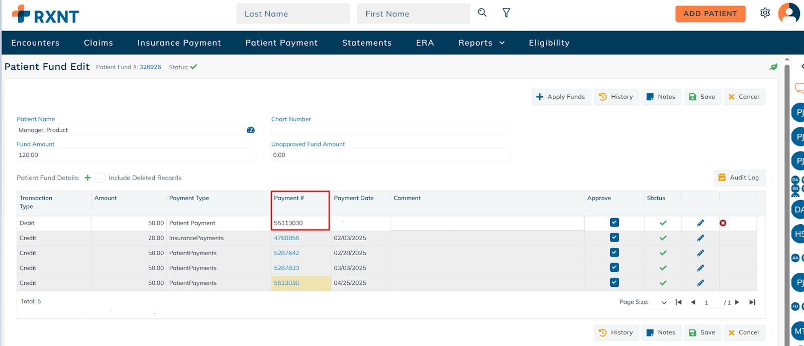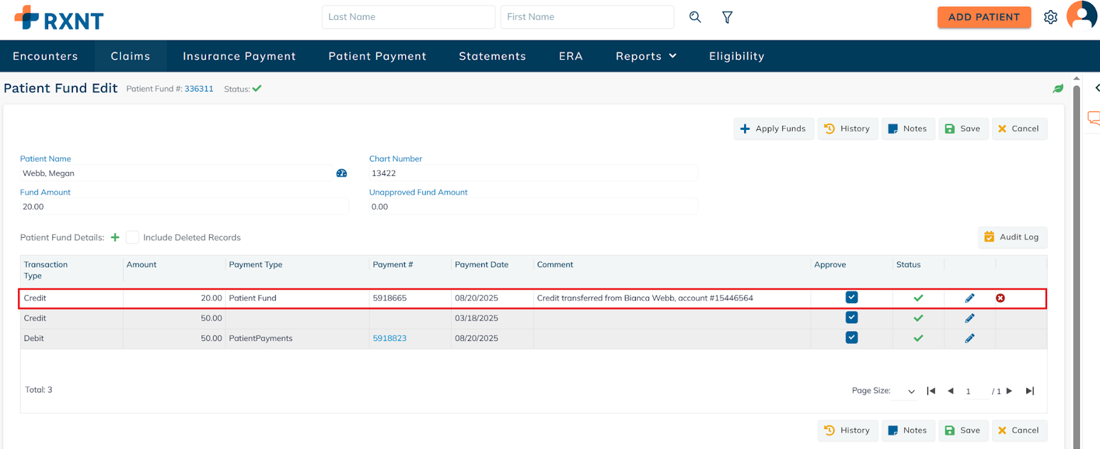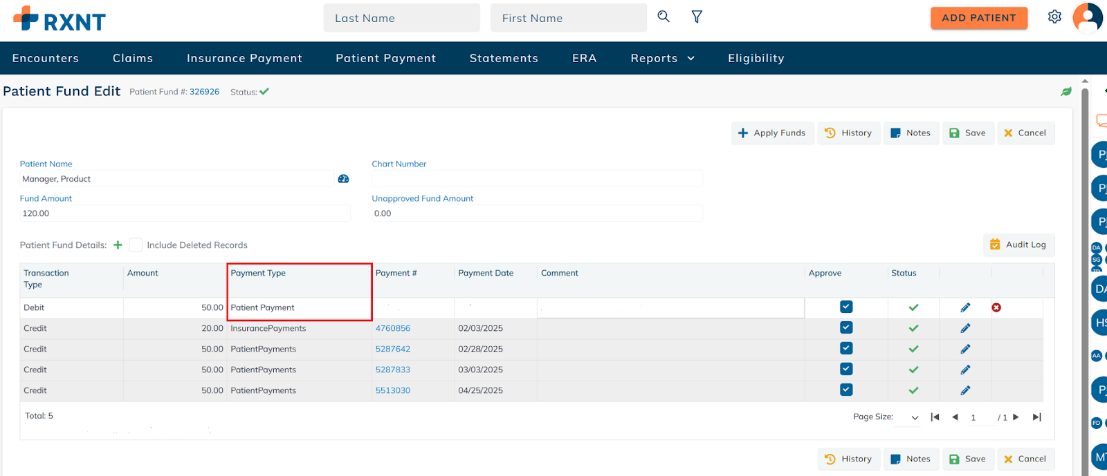 - If a patient paid a specific amount, then the payer states the patient portion should have been less. RXNT will automatically create a Patient Fund for you.