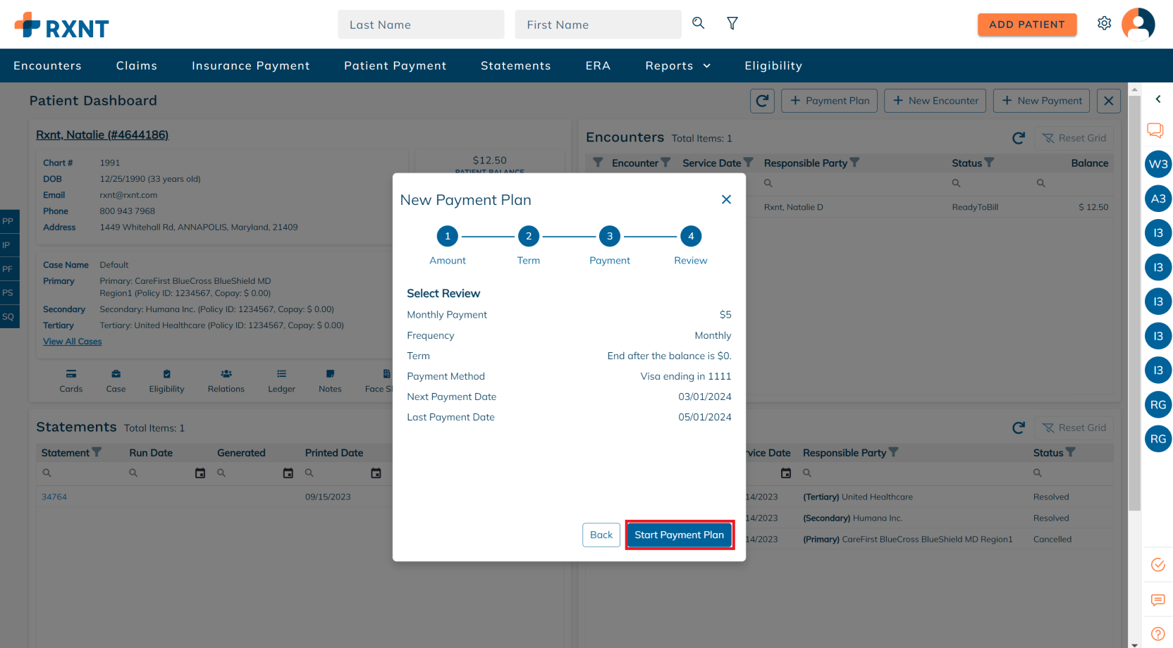 Users can easily set up a Payment Plan on the patient dashboard.