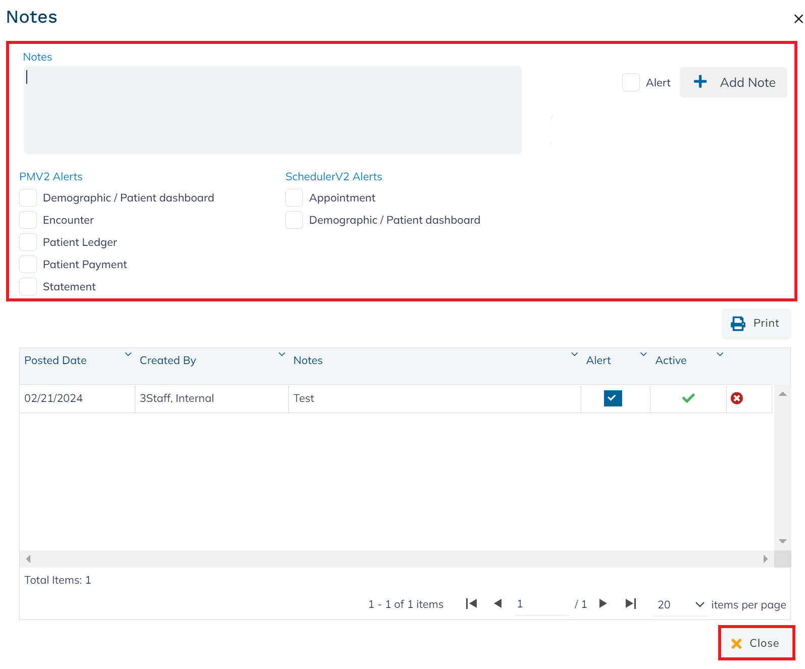 Patient-related notes can be conveniently included here. Within billing and scheduling modules, users have the option to specify what screens these notes should be visible on. Utilizing the Alert feature, notes can be configured to appear as pop-ups when accessing specific screens. It's important to note that these alerts are intended solely for internal staff use.