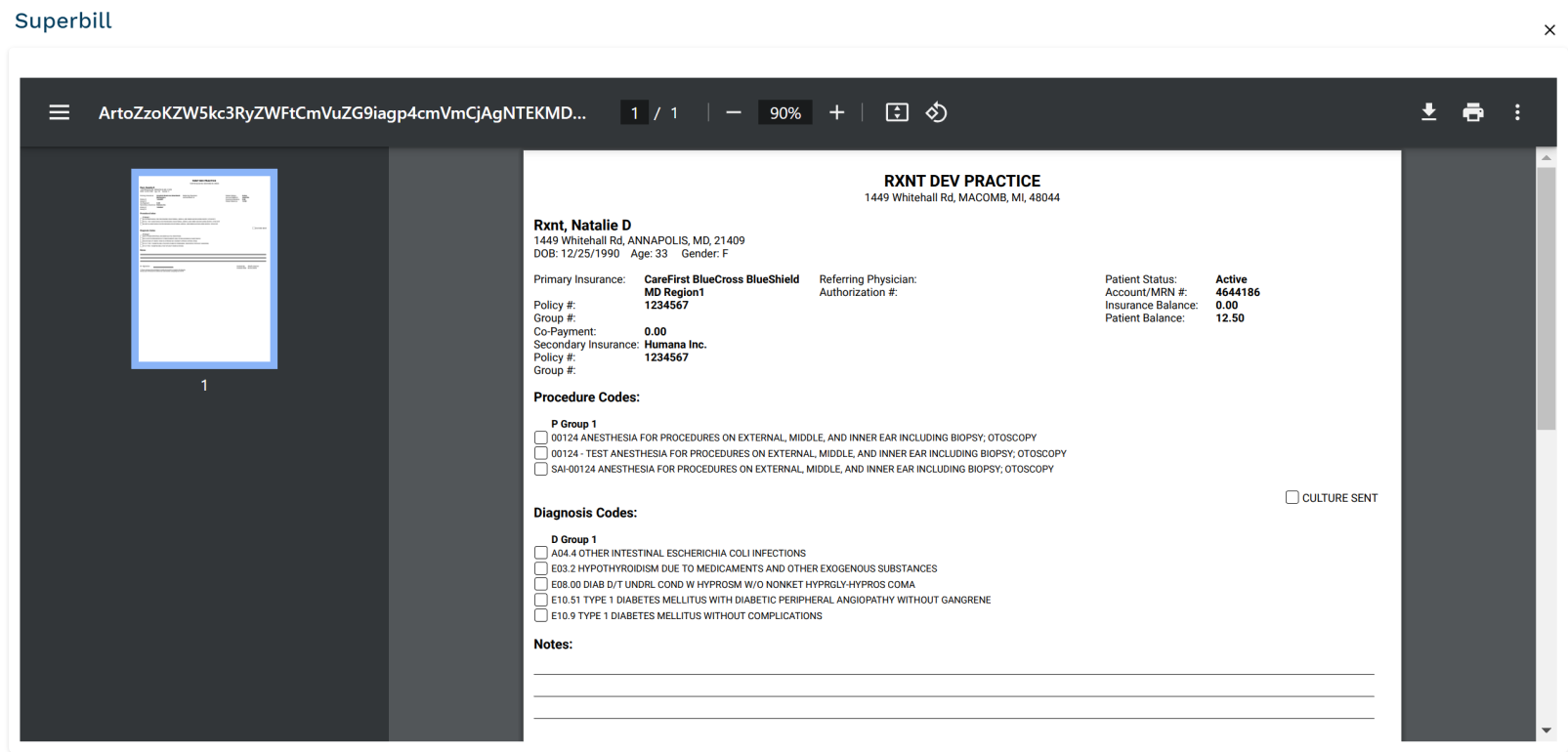 Superbills can be printed from this section if they have been previously created in utilities. Click here to learn more about creating superbills.