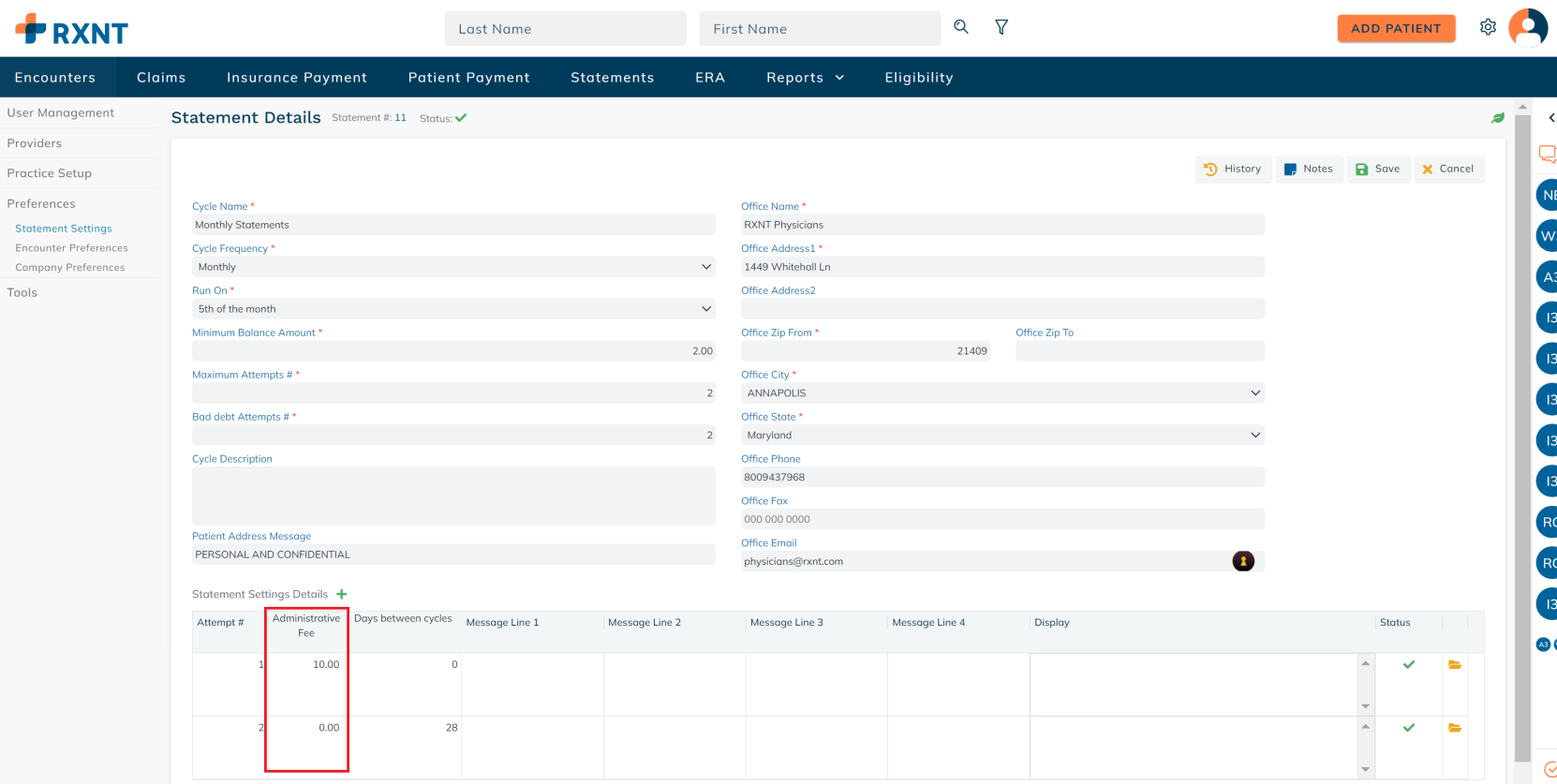 RXNT's administrative fee feature allows doctor companies to charge patients a fee of any amount of choice for late statements. This will incentivize prompt payment and recoup administrative costs for multiple statement generation attempts.