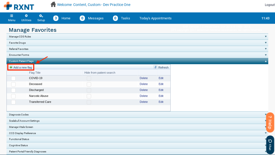 Click Custom Patient Flags.