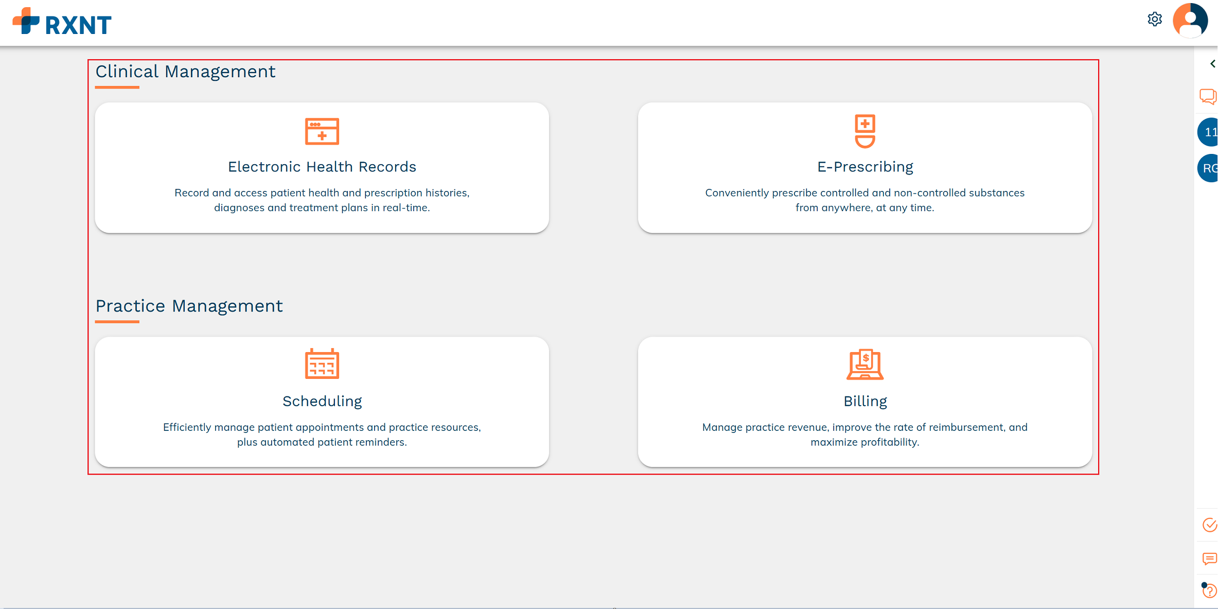 The Product Dashboard is the central access point for all RXNT products. It also provides account management tools for practice administrators and managers with the appropriate user role. To learn more about staff users, click here.