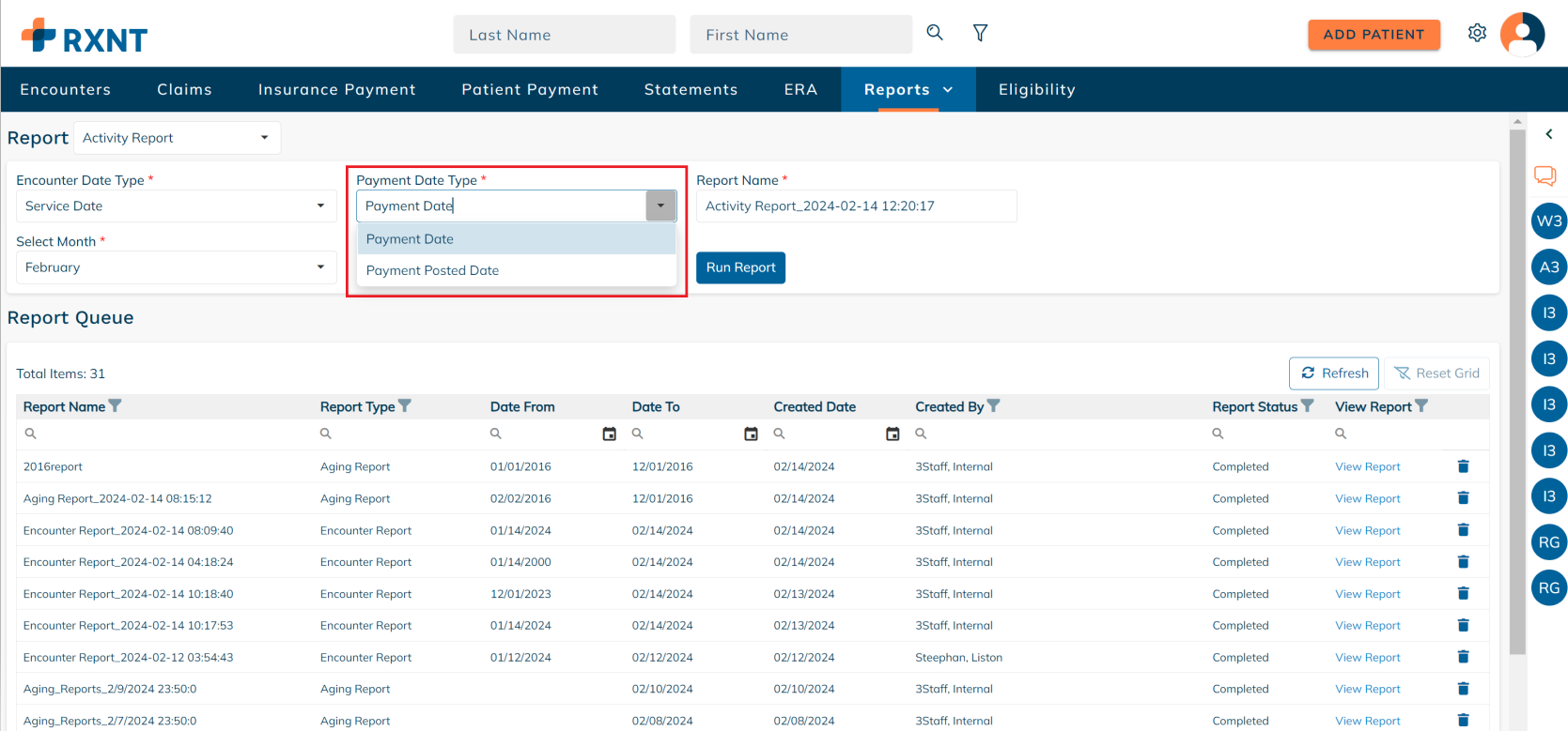 If you find any manually added patient funds missing from the Activity Report, simply add a payment date to the manually added patient fund to reflect accurate data in the Activity report.