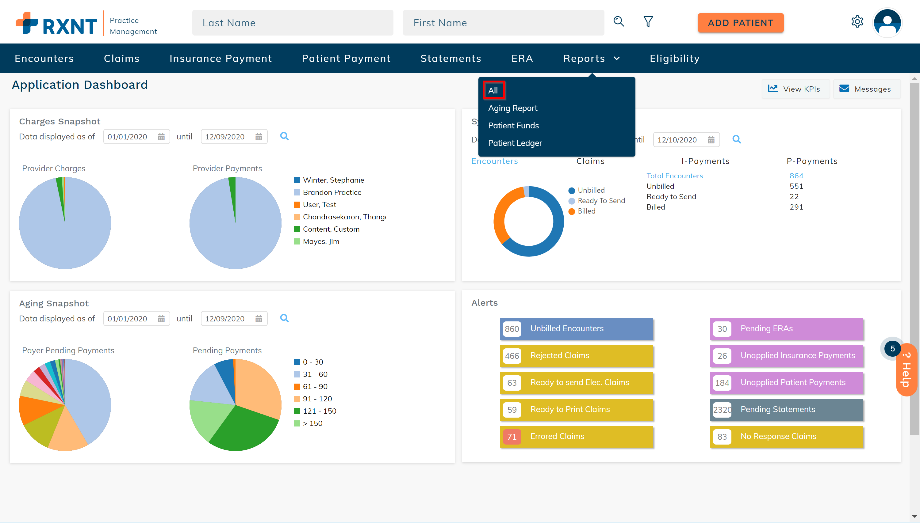 You can filter the report based on who created or modified the encounters, claims, and payments by making a selection from the Created By or Modified By dropdown menus.