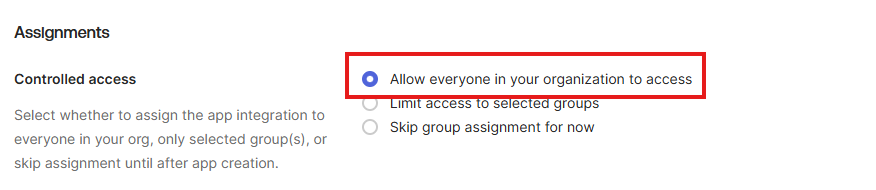 Under the Assignments section, select Allow everyone in your organization to access. Then, click Save.