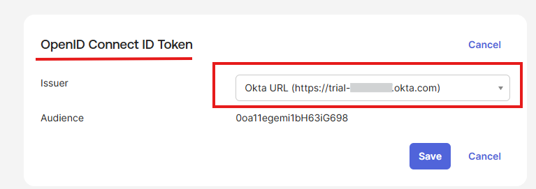 Navigate to the OpenID Connect ID Token section and change the Issuer to use the Okta URL. Click Save and copy this URL to use in a later step.