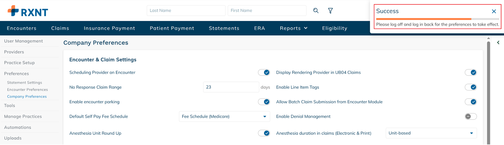 Click Save to apply your changes. A confirmation pop-up will appear indicating the updates were saved successfully, and you will need to log out and back in for the new preferences to take effect.