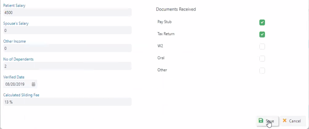 Note: In the encounter, the case type must be "Self Pay" for the sliding fee to work.