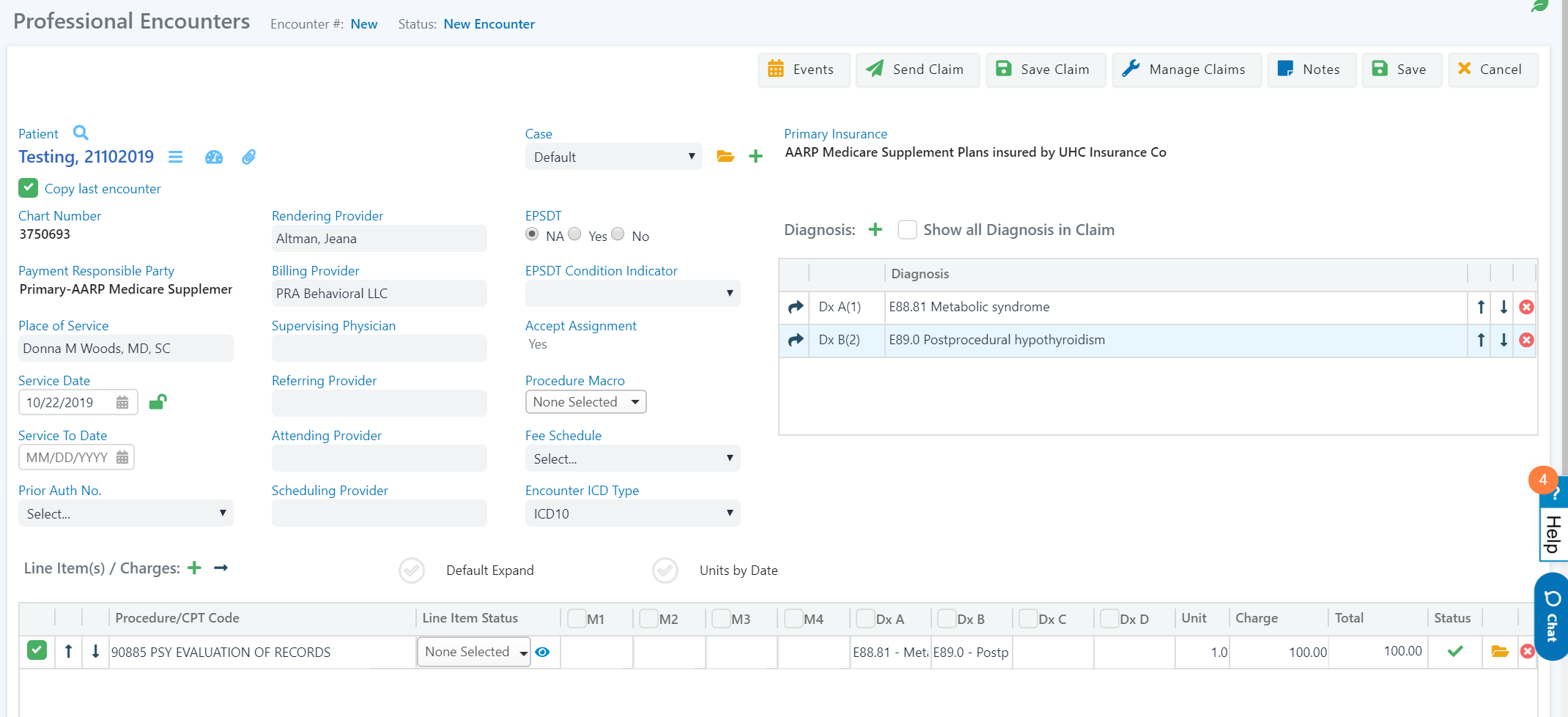 Also, assume you charge them $100 in an encounter. Once you have completed the necessary information, click “Send Claim.”