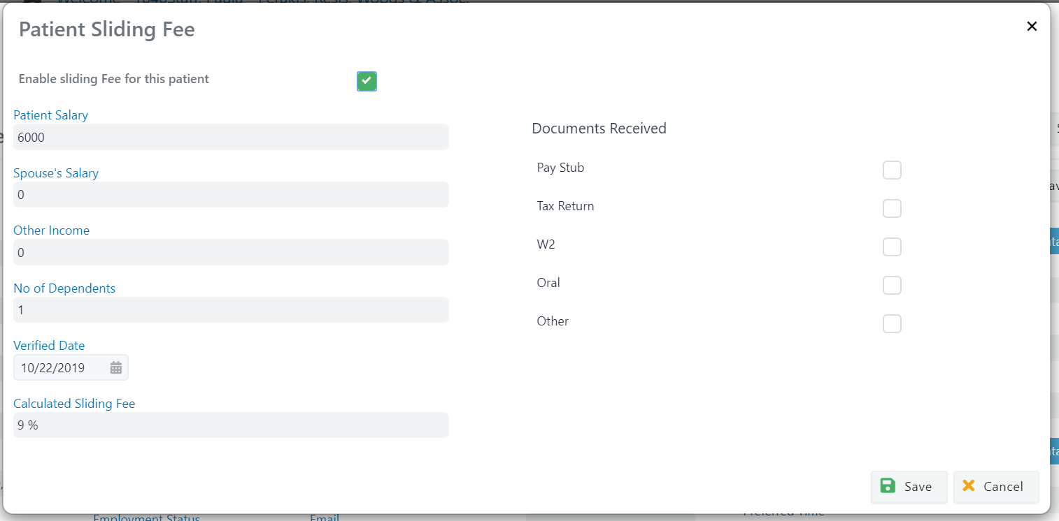 In the example below, assume the patient has a 9% sliding fee.