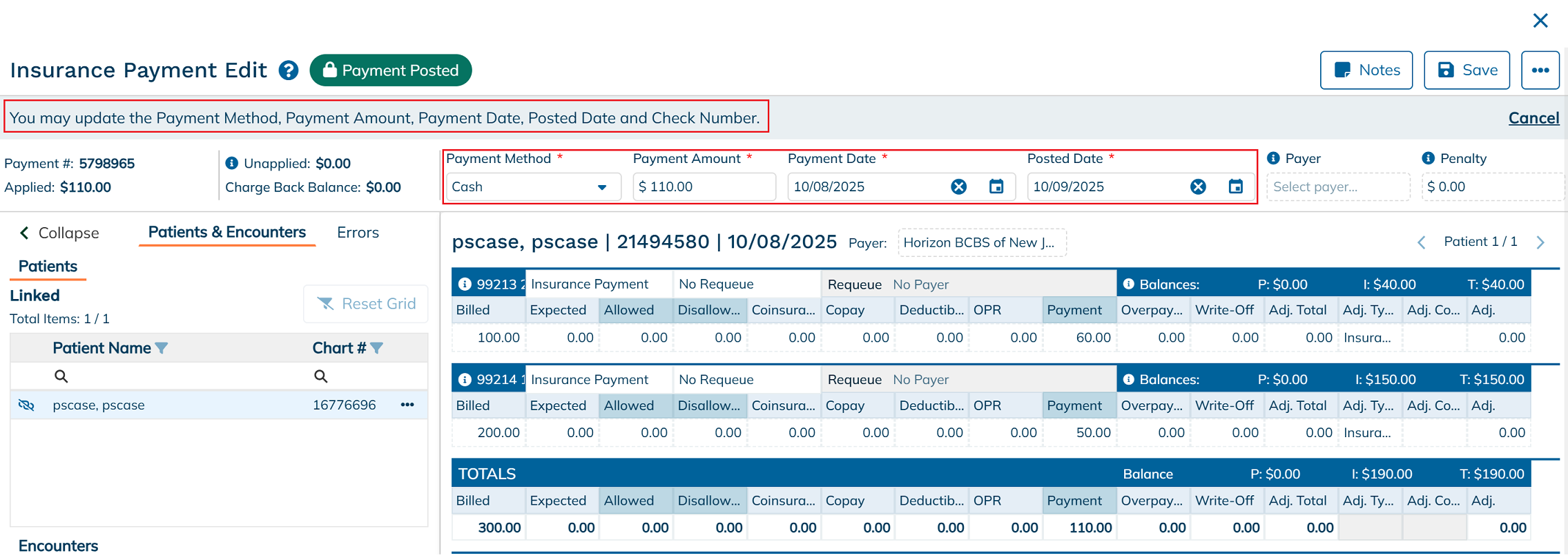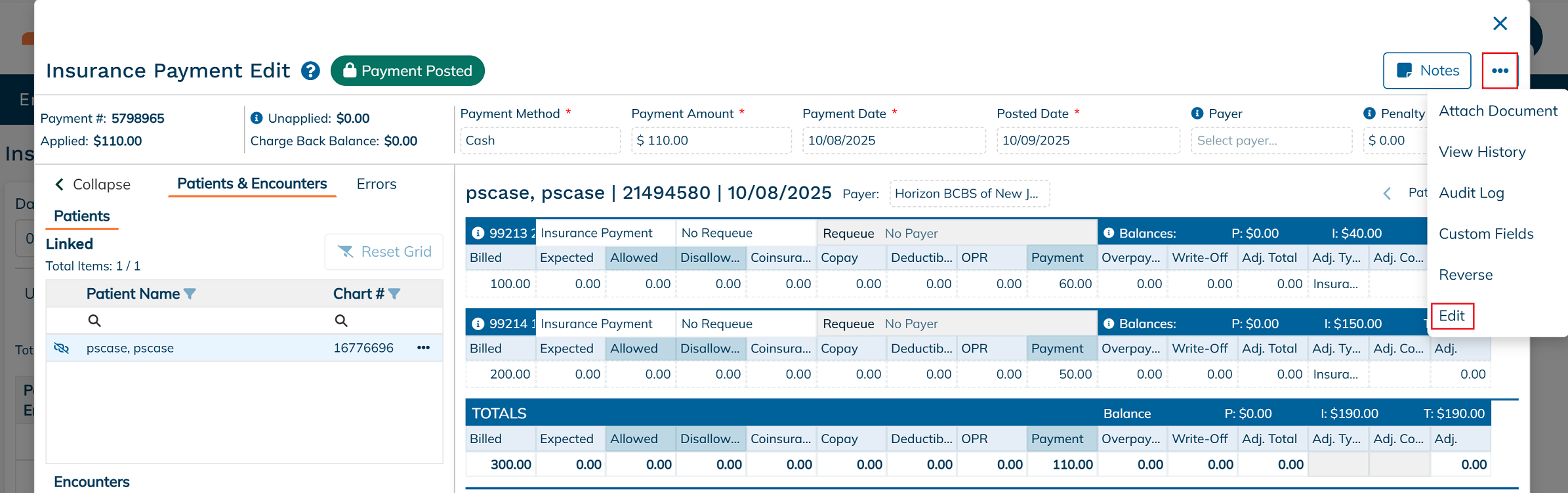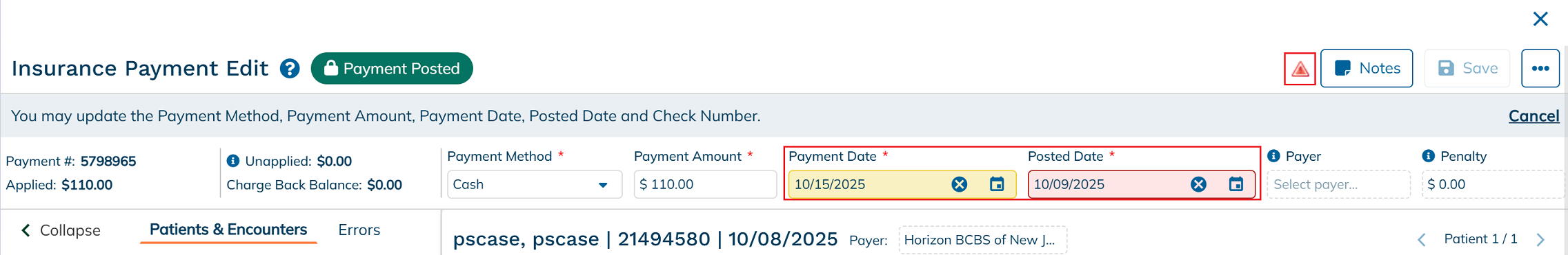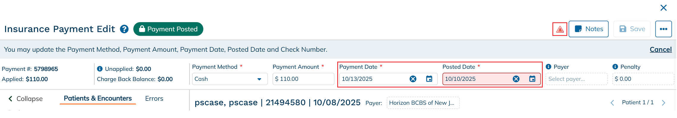 Posted insurance payments can be easily modified to correct or update key payment details. Users have the ability to update specific fields, including: Payment Method, Payment Amount, Payment Date, Posted Date, and Check Number. These edits ensure that your financial records remain accurate and reflect the most up-to-date information. Itβs important to review changes carefully, as they may affect claim balances, reports, and reconciliation processes.