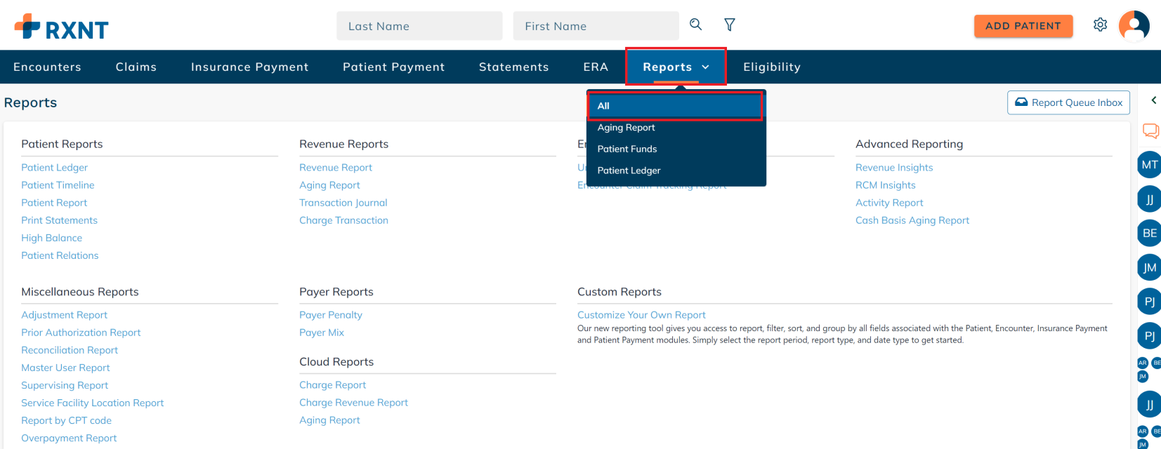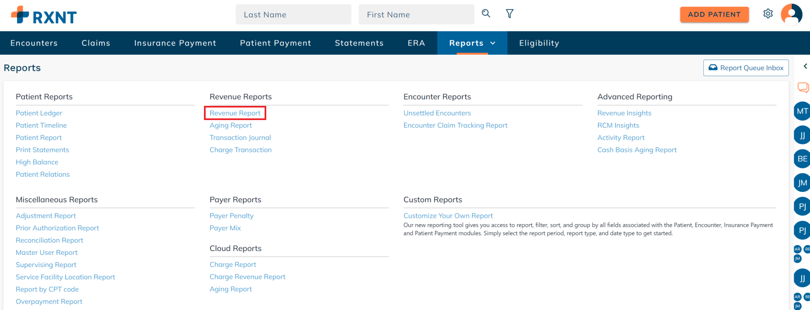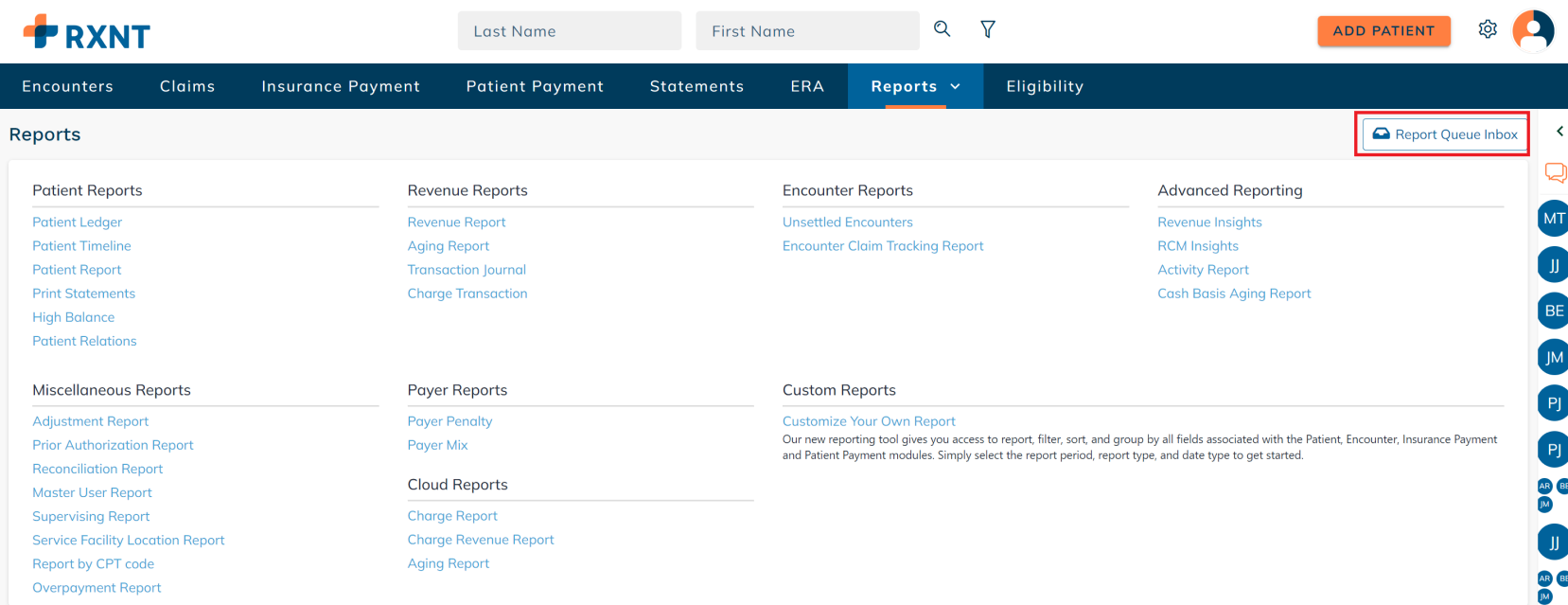 Navigate back to the Reports screen and click Report Queue Inbox.