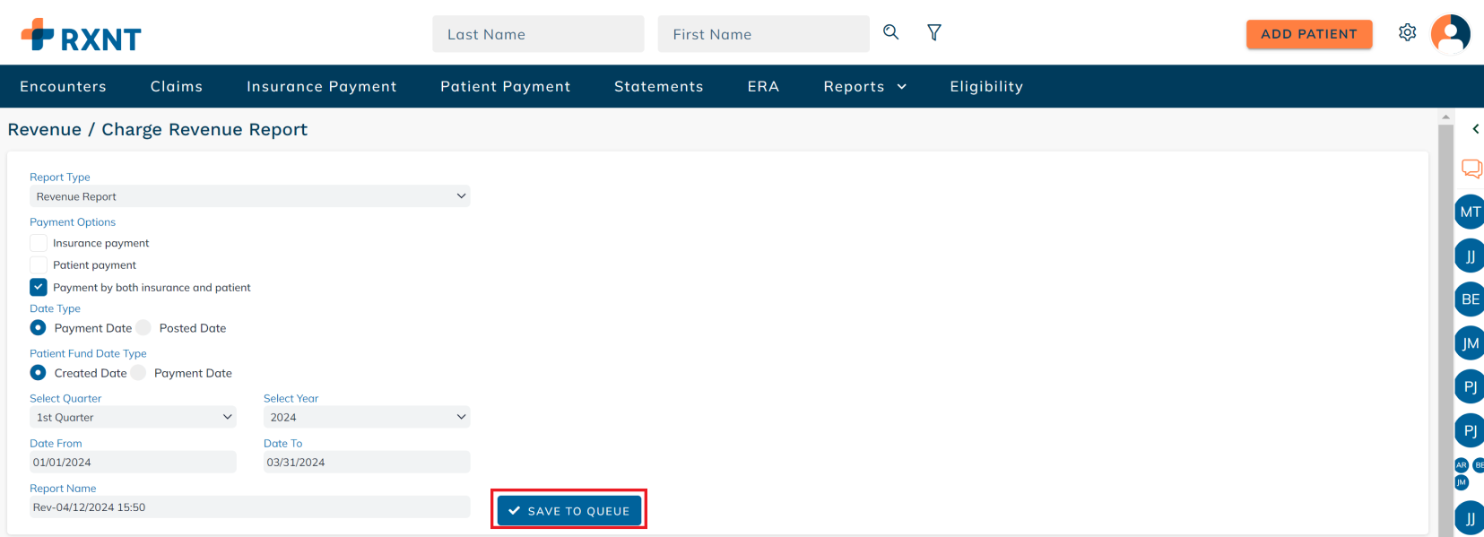 Select the Patient Fund Date Type.