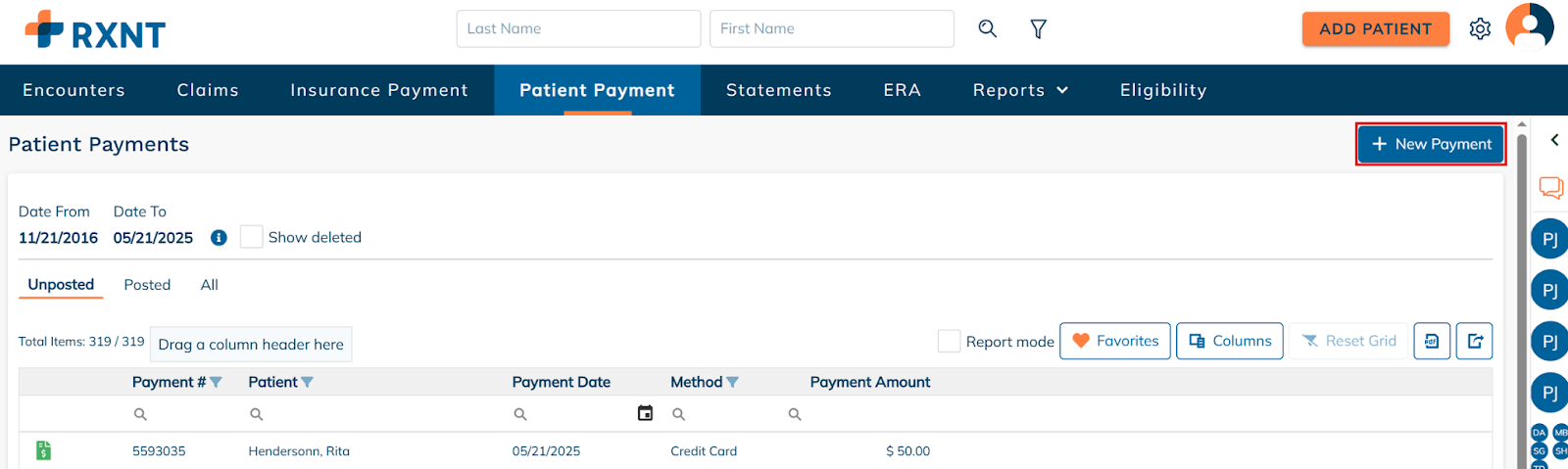Click New Payment.